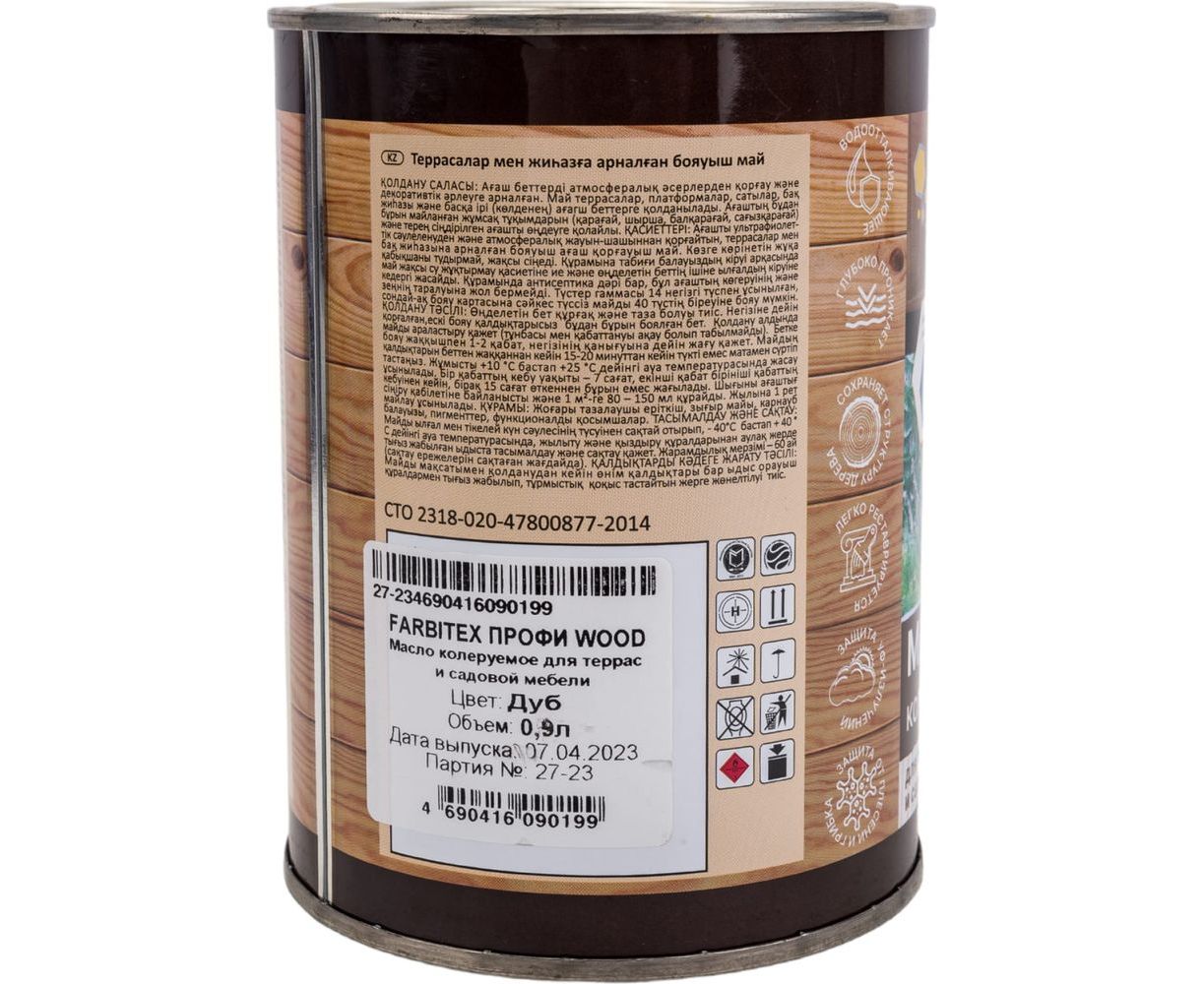 Колеруемое масло для террас и садовой мебели FARBITEX (дуб; 0.9 л) 4300005047