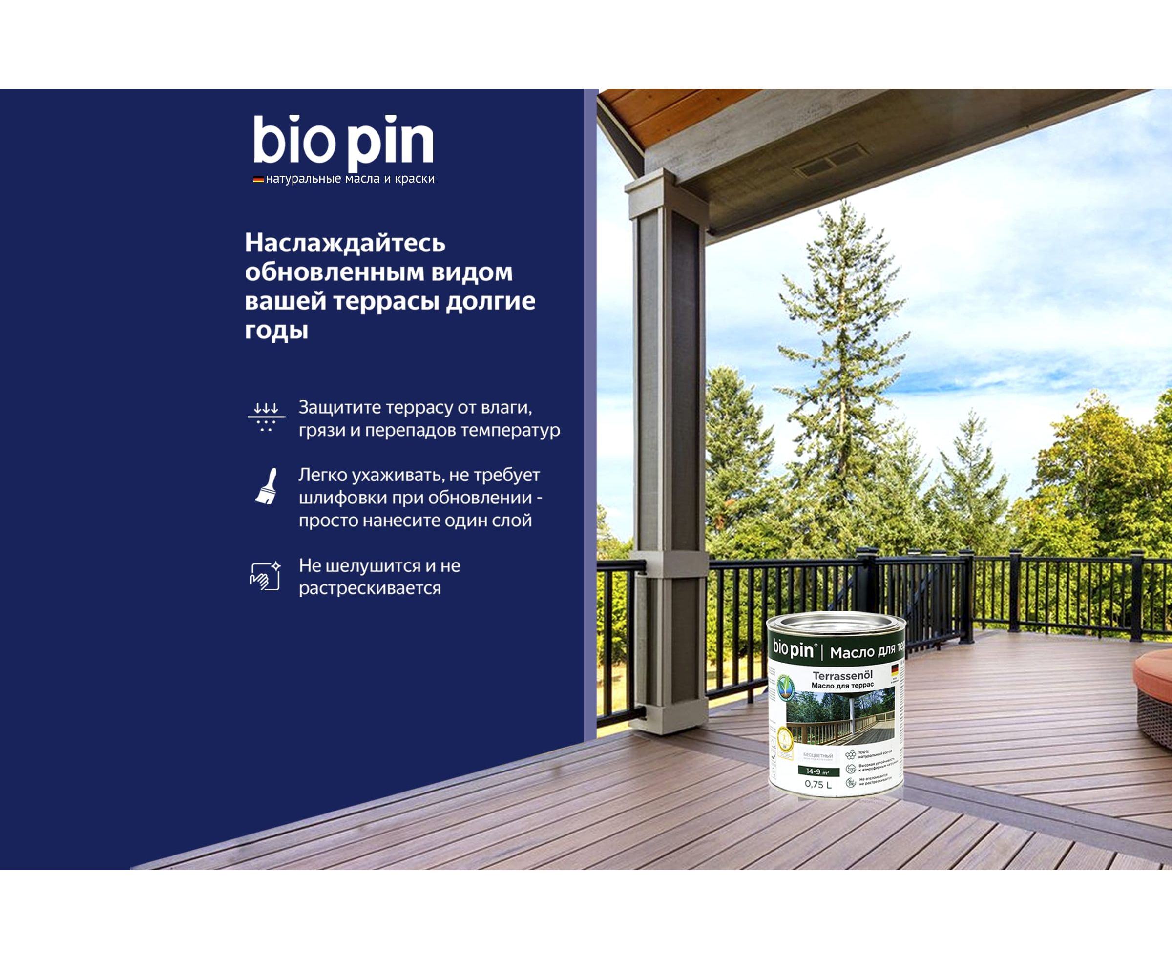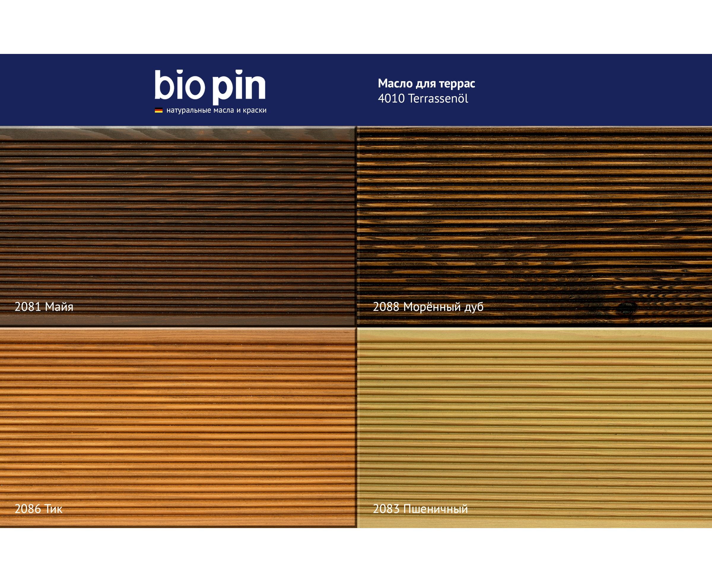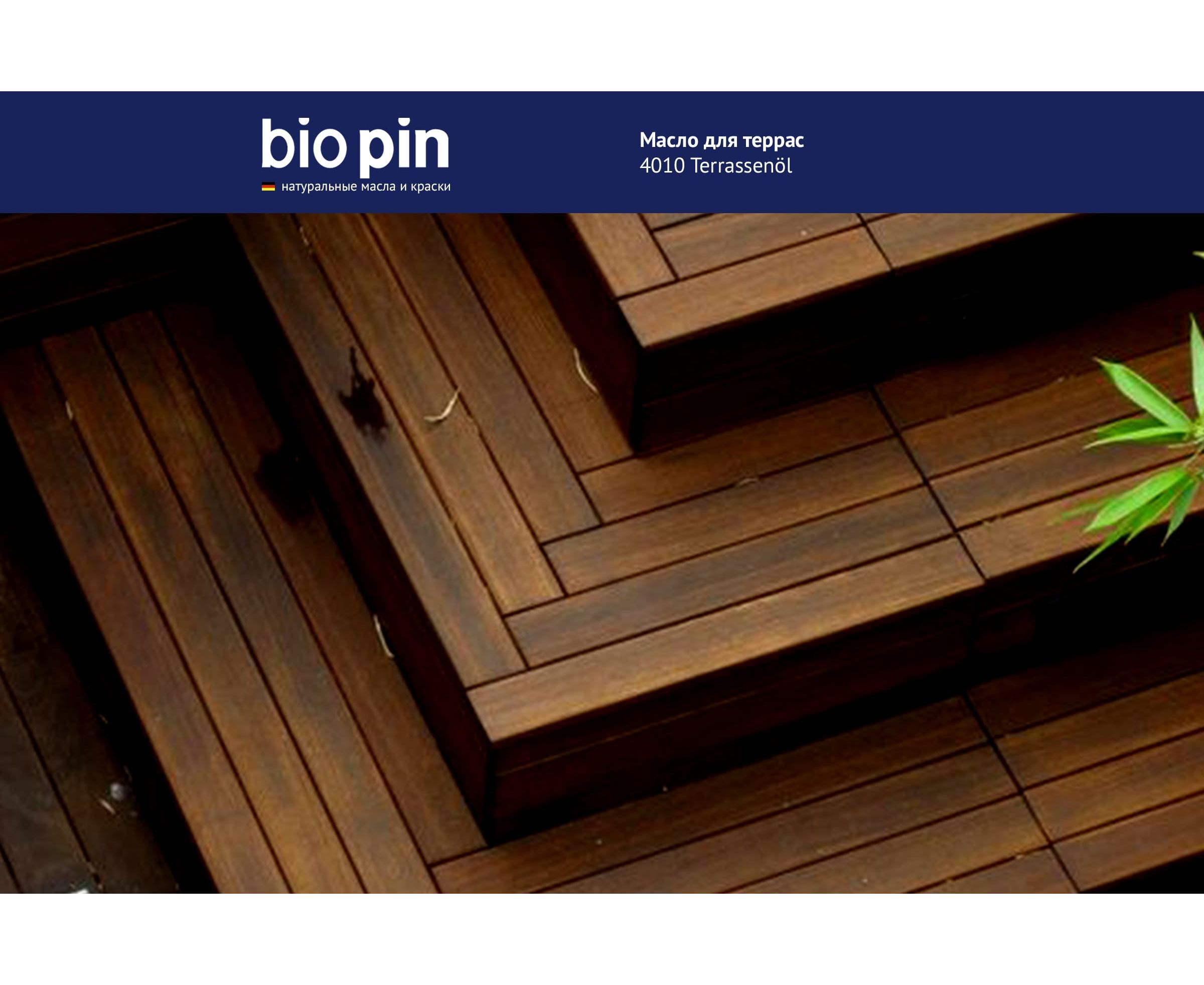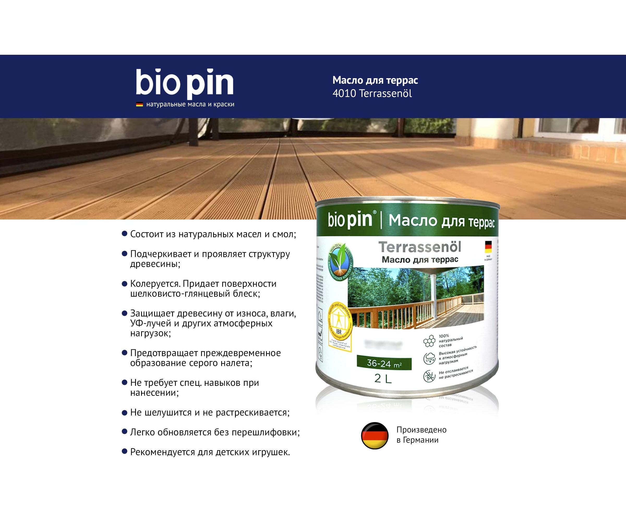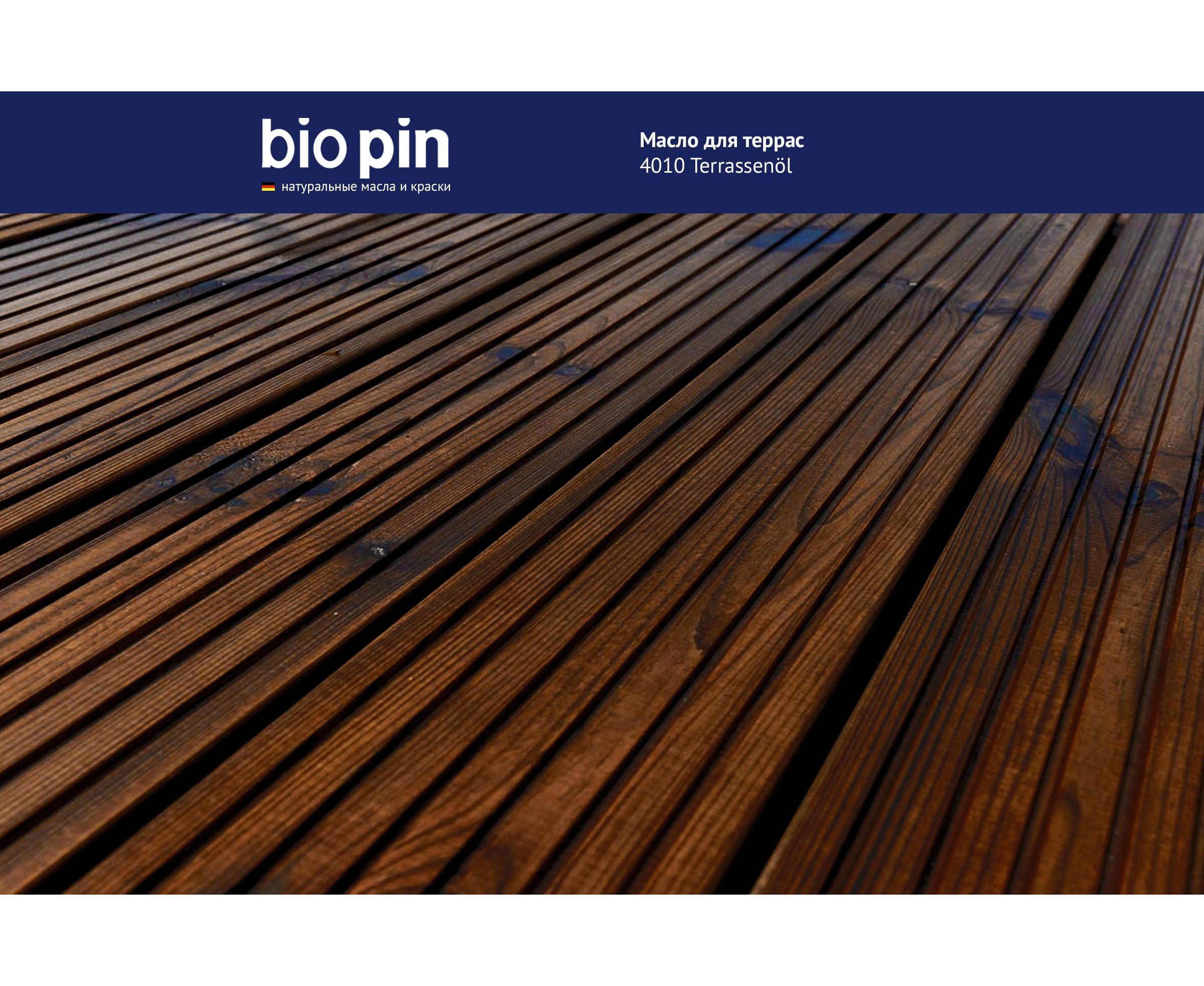 Масло для террас BIO PIN 4010 Terrassenol в цвете Майя 2 л 40105C103 - специальное масло для наружных работ из натуральных растительных масел и смол.