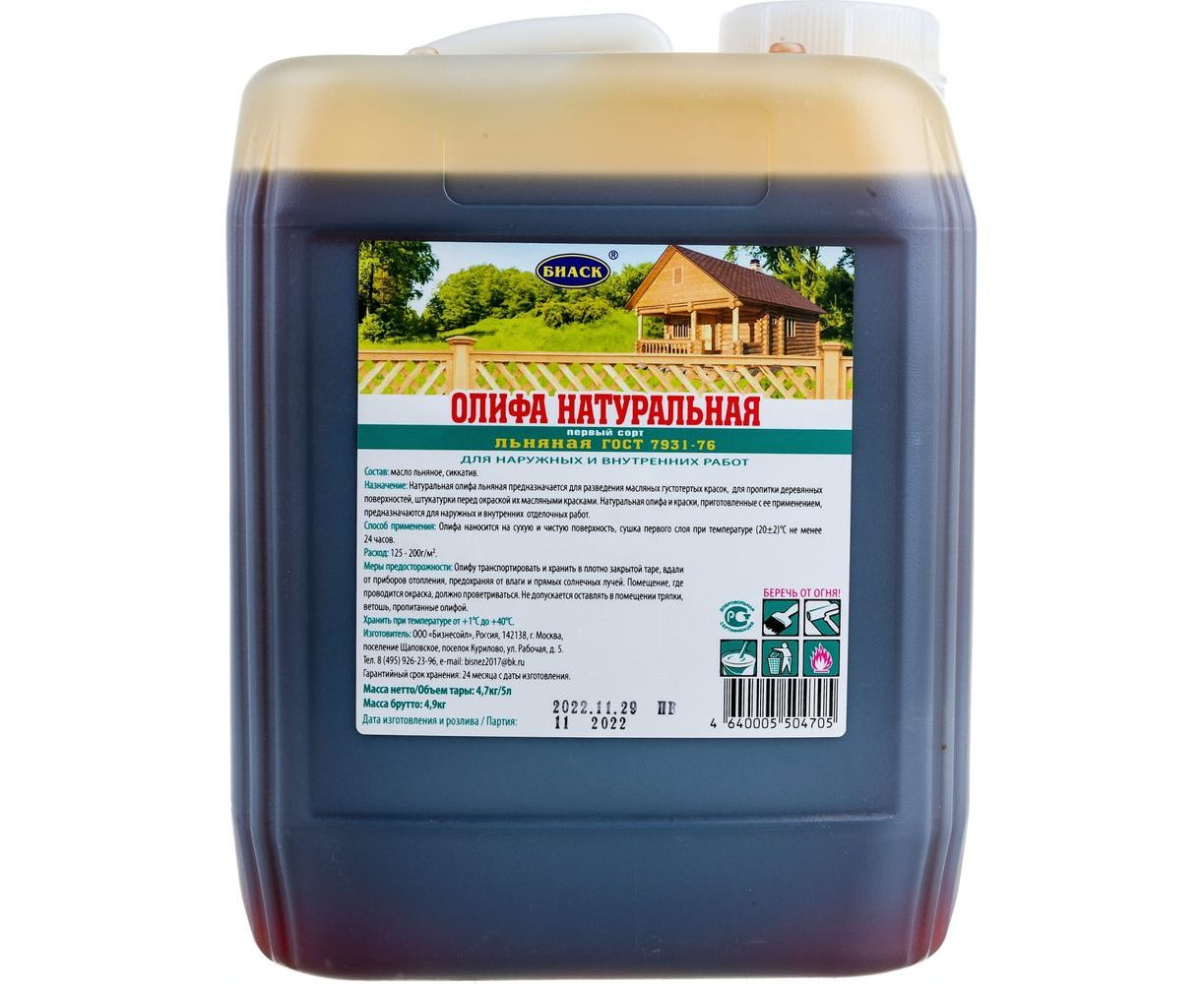 Олифа натуральная льняная БИАСК 5л ОЛ-5/4,7кг ПК