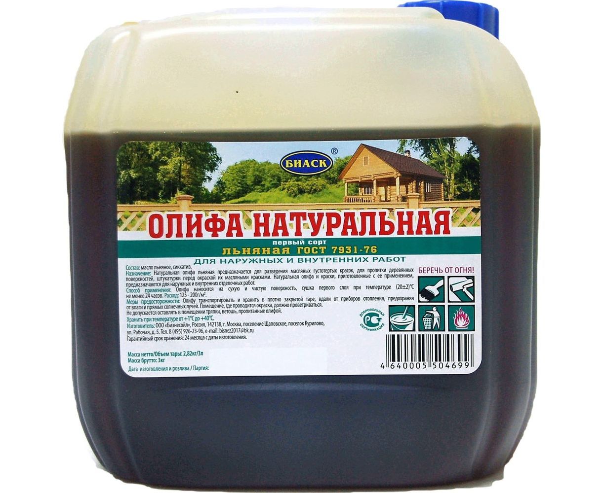 Олифа натуральная льняная БИАСК ОЛ-3/2,82кг ПК
