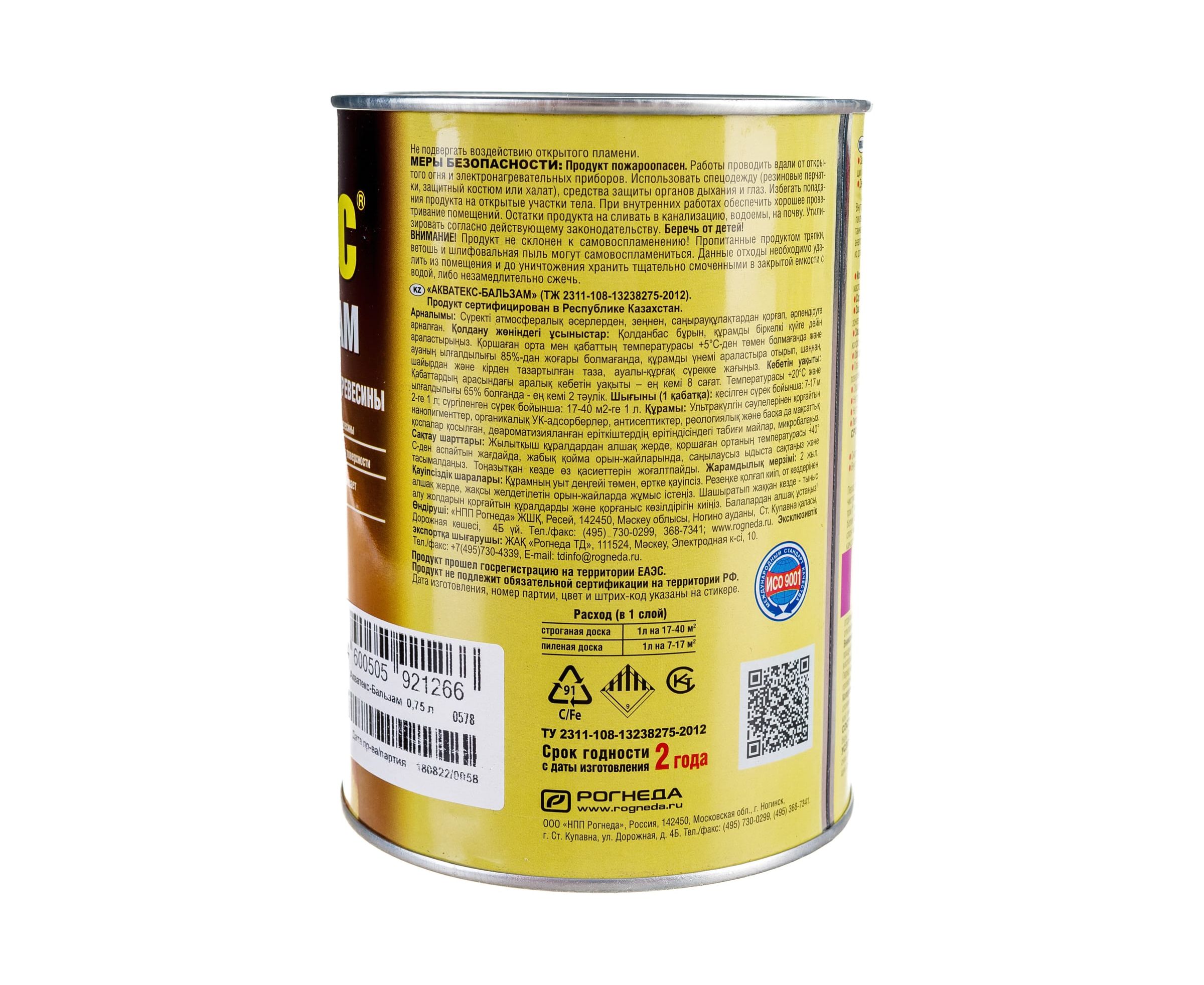 Бальзам Акватекс тик 0,75 л 6 45786 предназначен для обработки деревянных поверхностей внутри и снаружи помещений.