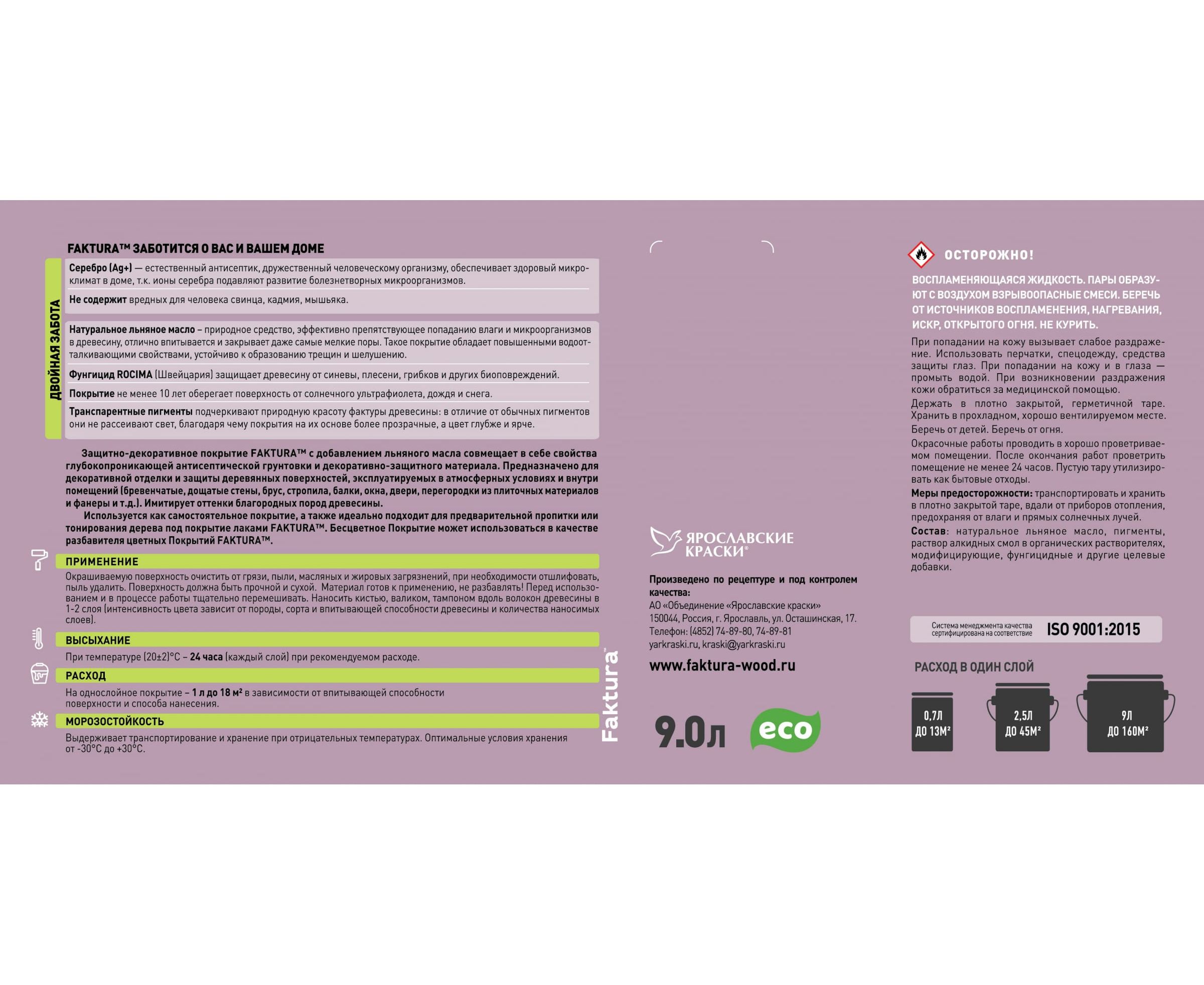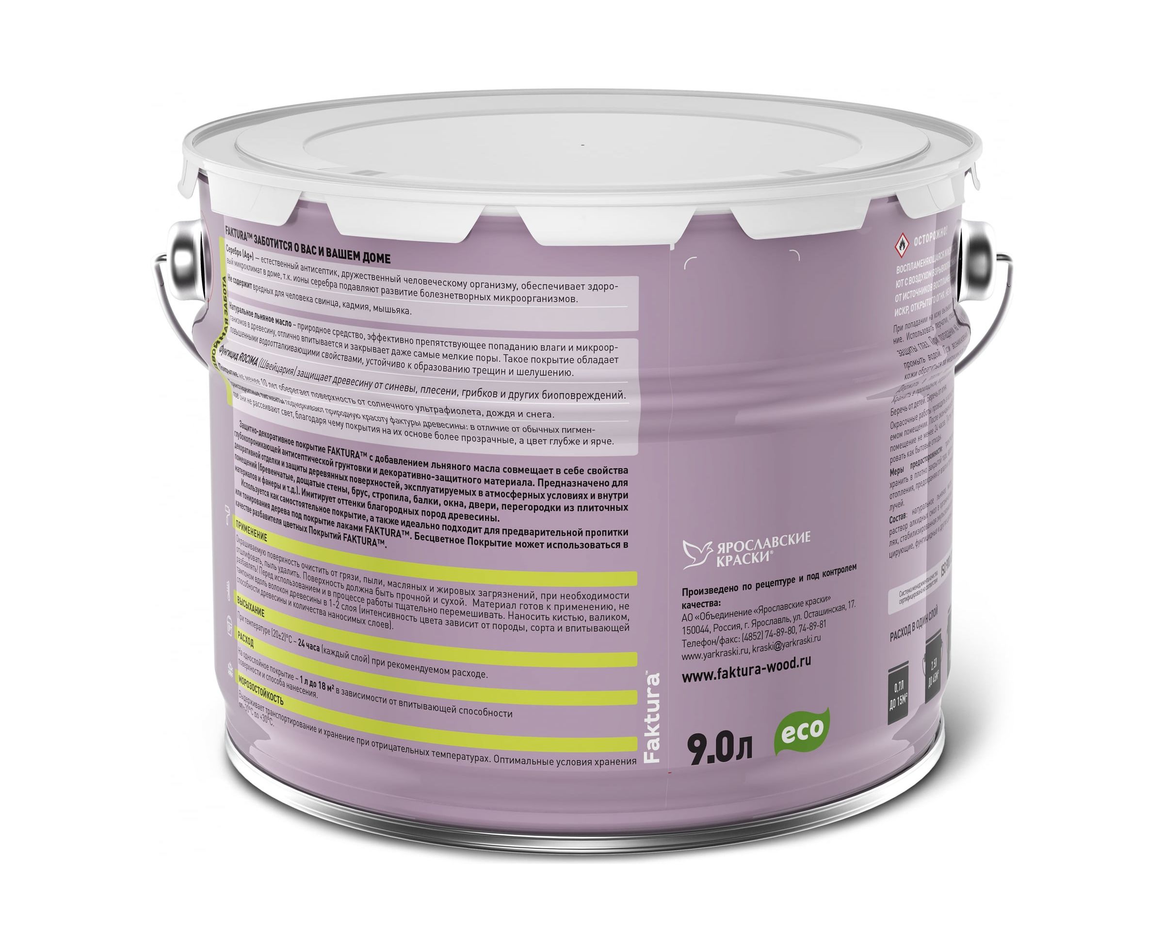 Биозащитное декоративное покрытие для дерева FAKTURA с льняным маслом и ионами серебра, орегон, ведро 9 л 208438 совмещает в себе свойства глубокопроникающей антисептической грунтовки и декоративно материала.