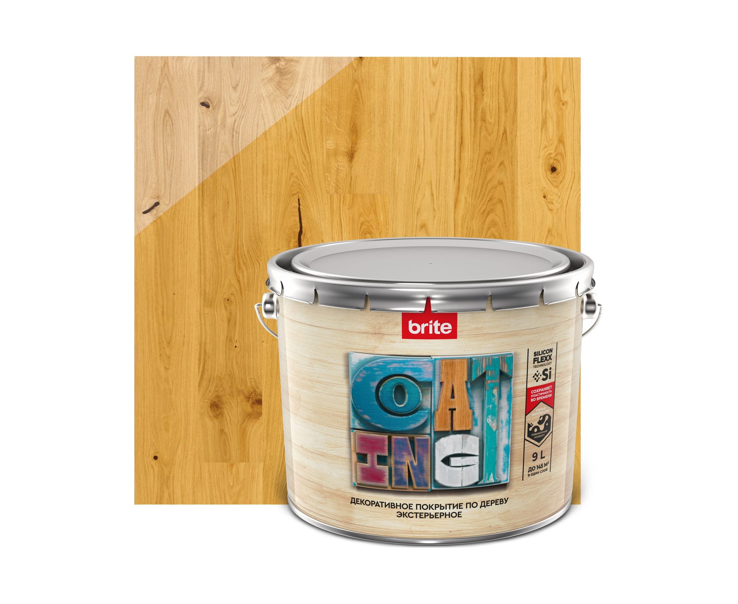 Декоративное покрытие по дереву BRITE FLEXX экстерьерное, орегон, ведро 9 л 212458