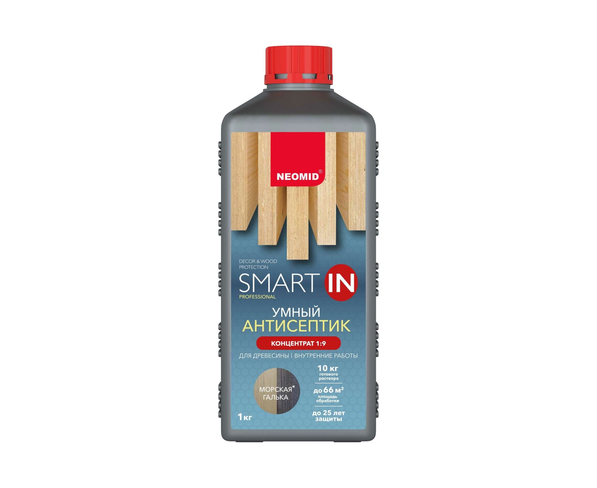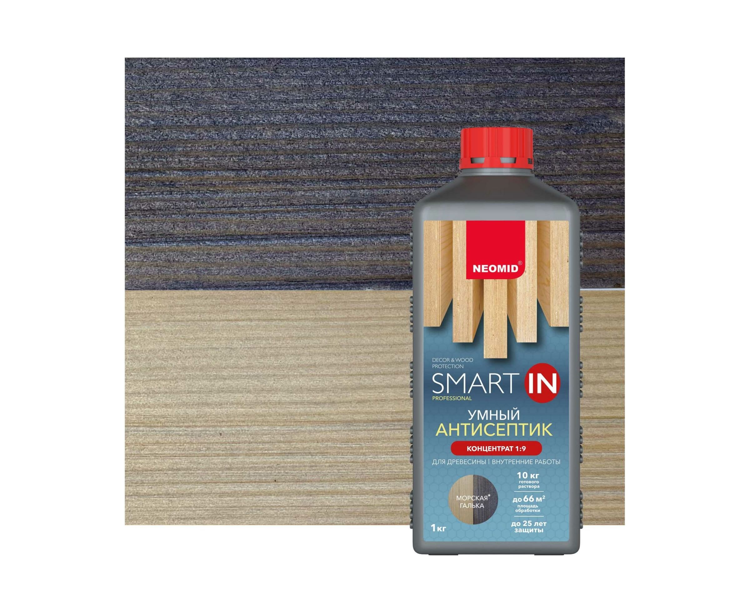 Декоративный антисептик NEOMID Smart In для внутренних работ, морская галька, 1 кг Н-Sm_In-1/мор.гал - это декоративная пропитка на водной основе обеспечивает долговременную защиту и тонирование древесины.