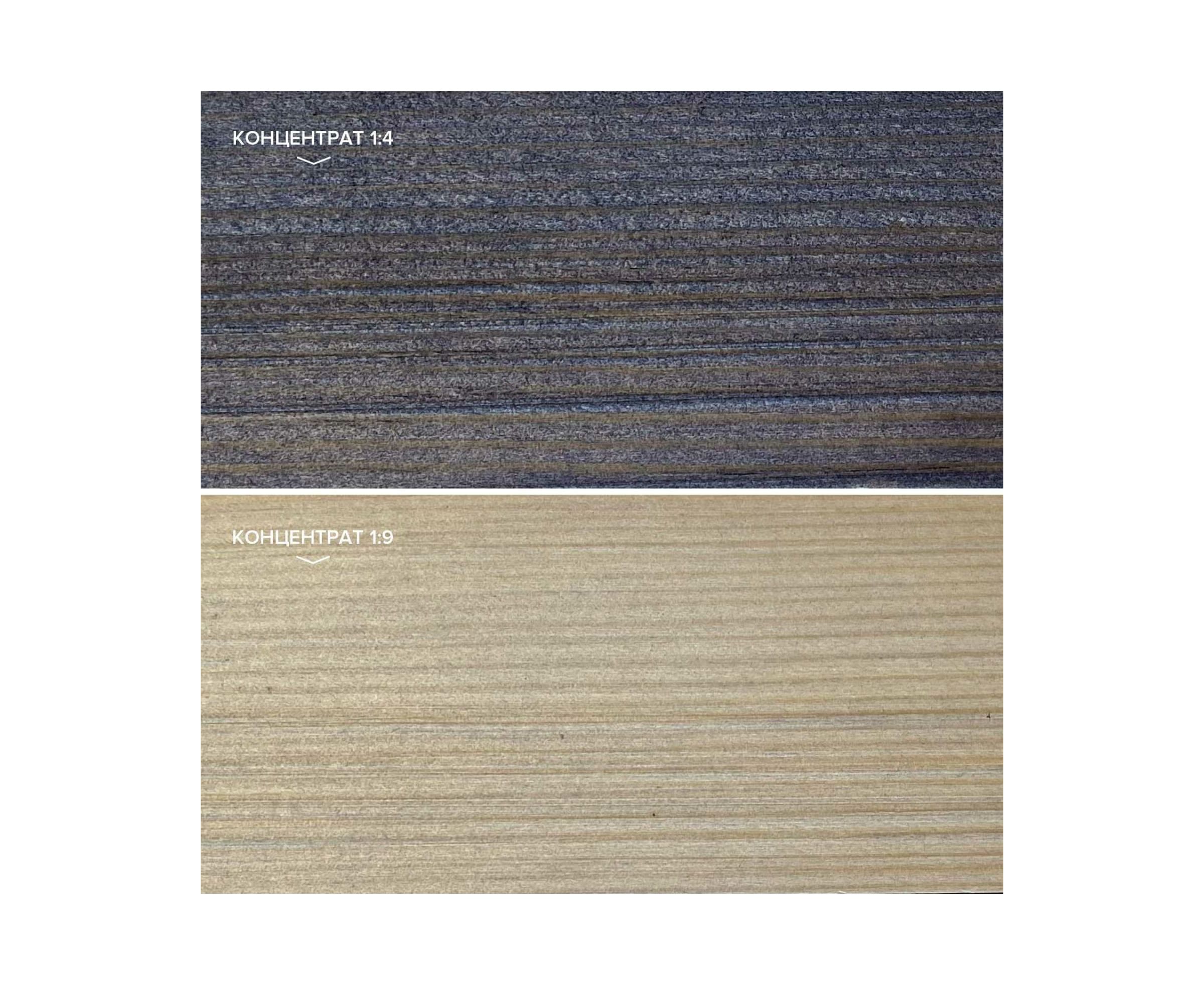 Используется концентрация от 1:9 до 1:4, в зависимости от желаемой интенсивности цвета и эффективности защиты. Допускается смешивание концентратов разных цветов.