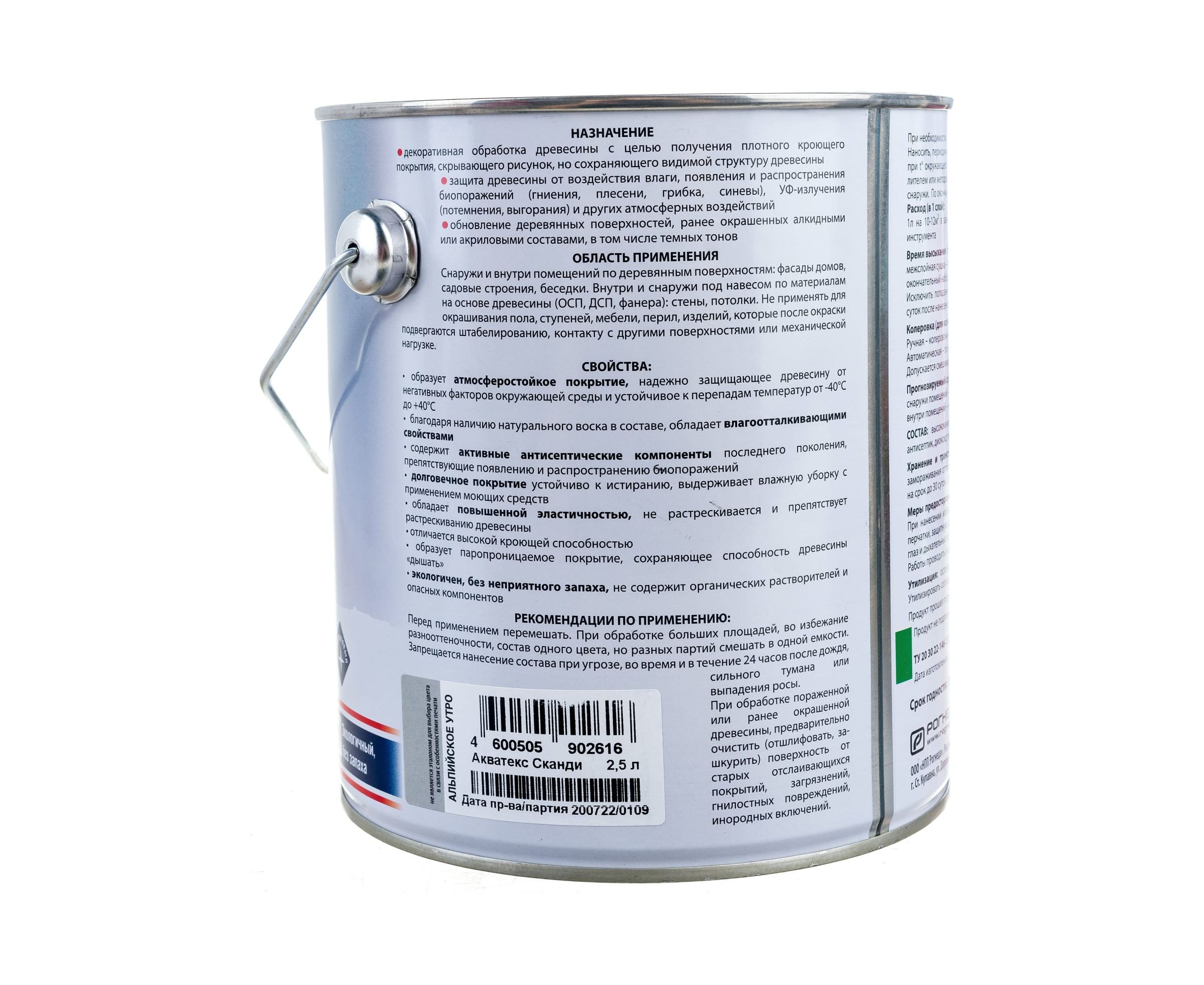 Кроющий антисептик для древесины Рогнеда Акватекс Сканди (альпийское утро; 2.5 л) 202909