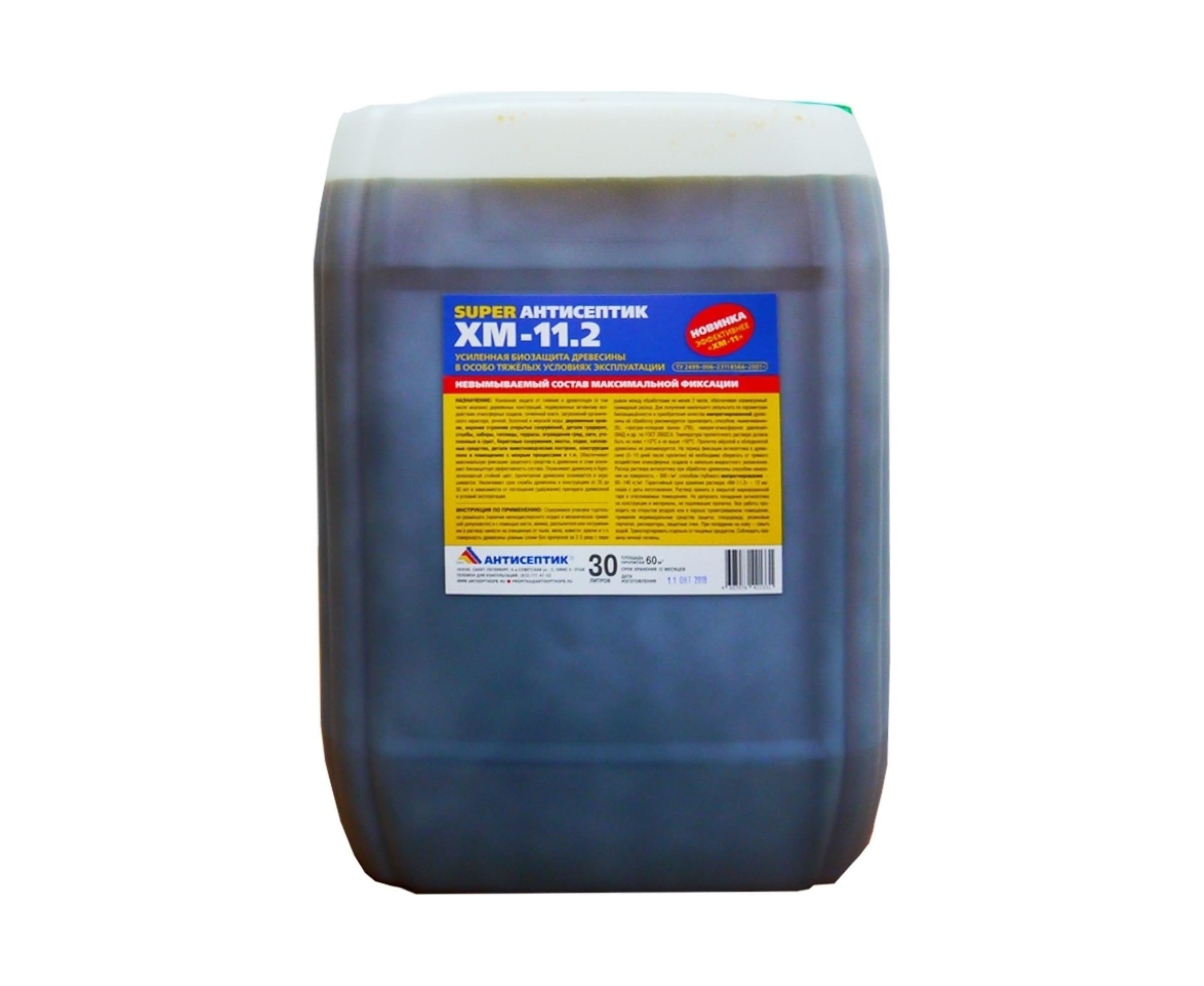 Раствор антисептика ЗАО "Антисептик" ХМ-11.2 в канистре 30 литров 00-00005355 наносится на конструкции, которые подвергаются активному и продолжительному воздействию атмосферных осадков, почвенной влаги, загрязнений органического характера, речной, болотной и морской воды.