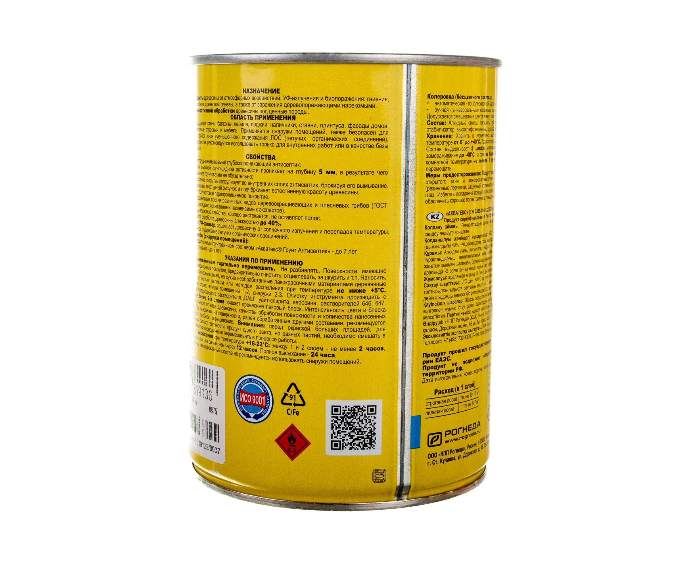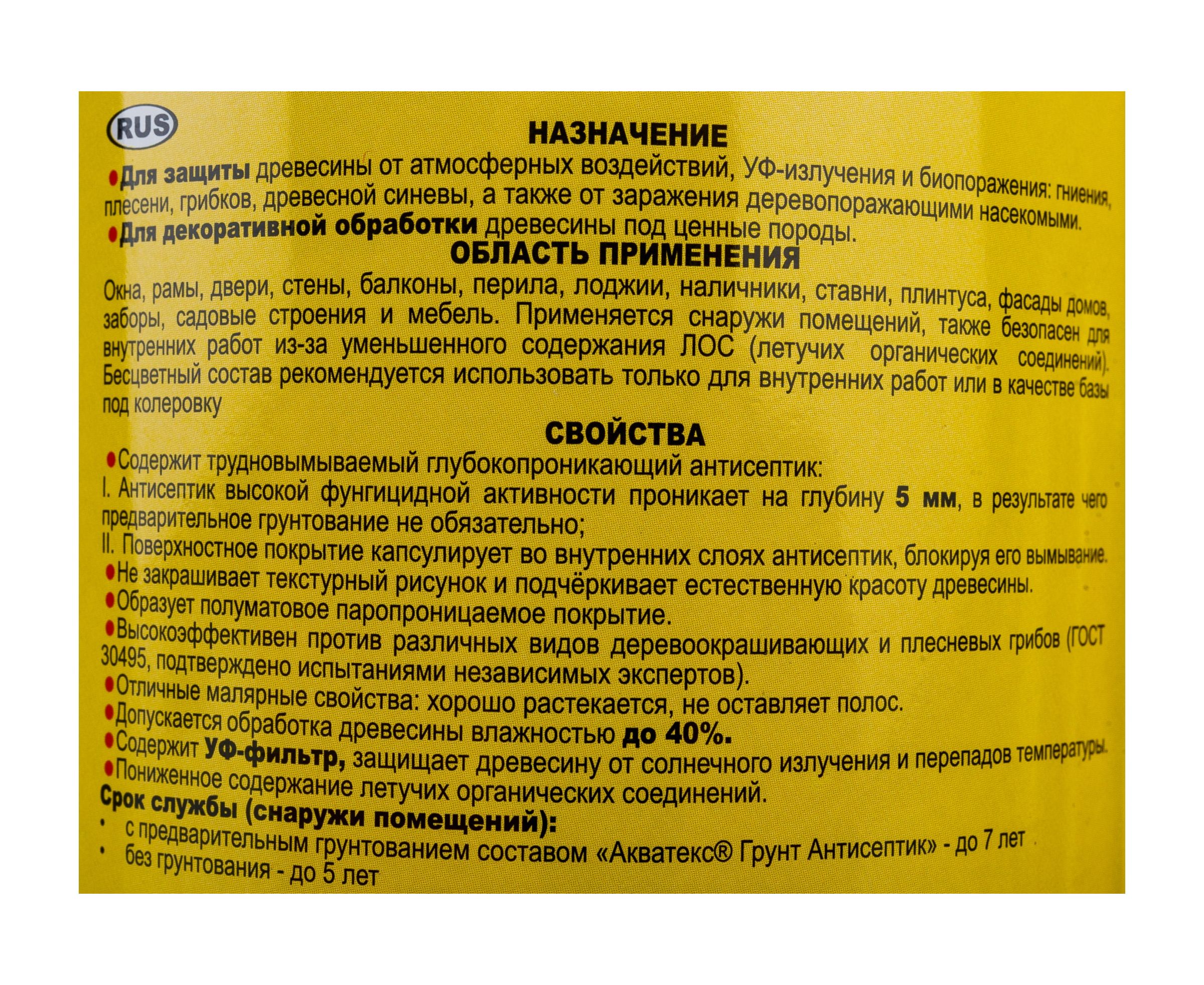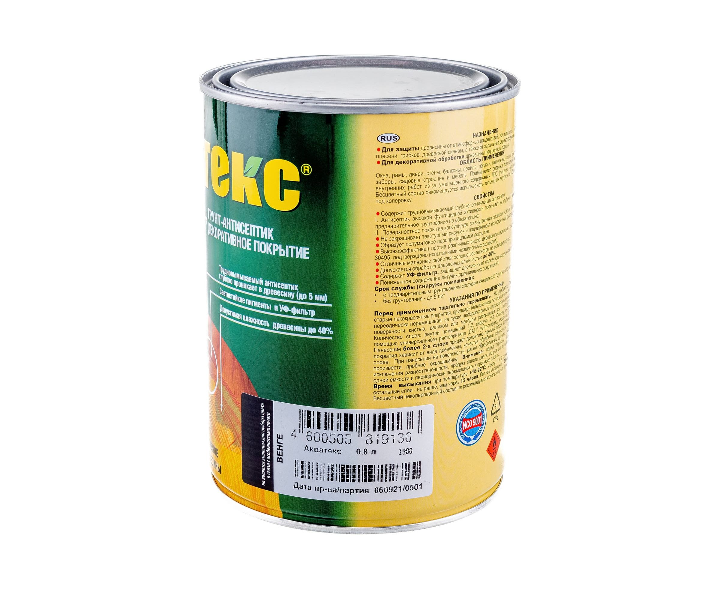 Защитно-декоративное покрытие для древесины Акватекс Венге 0.8 л 6 135084