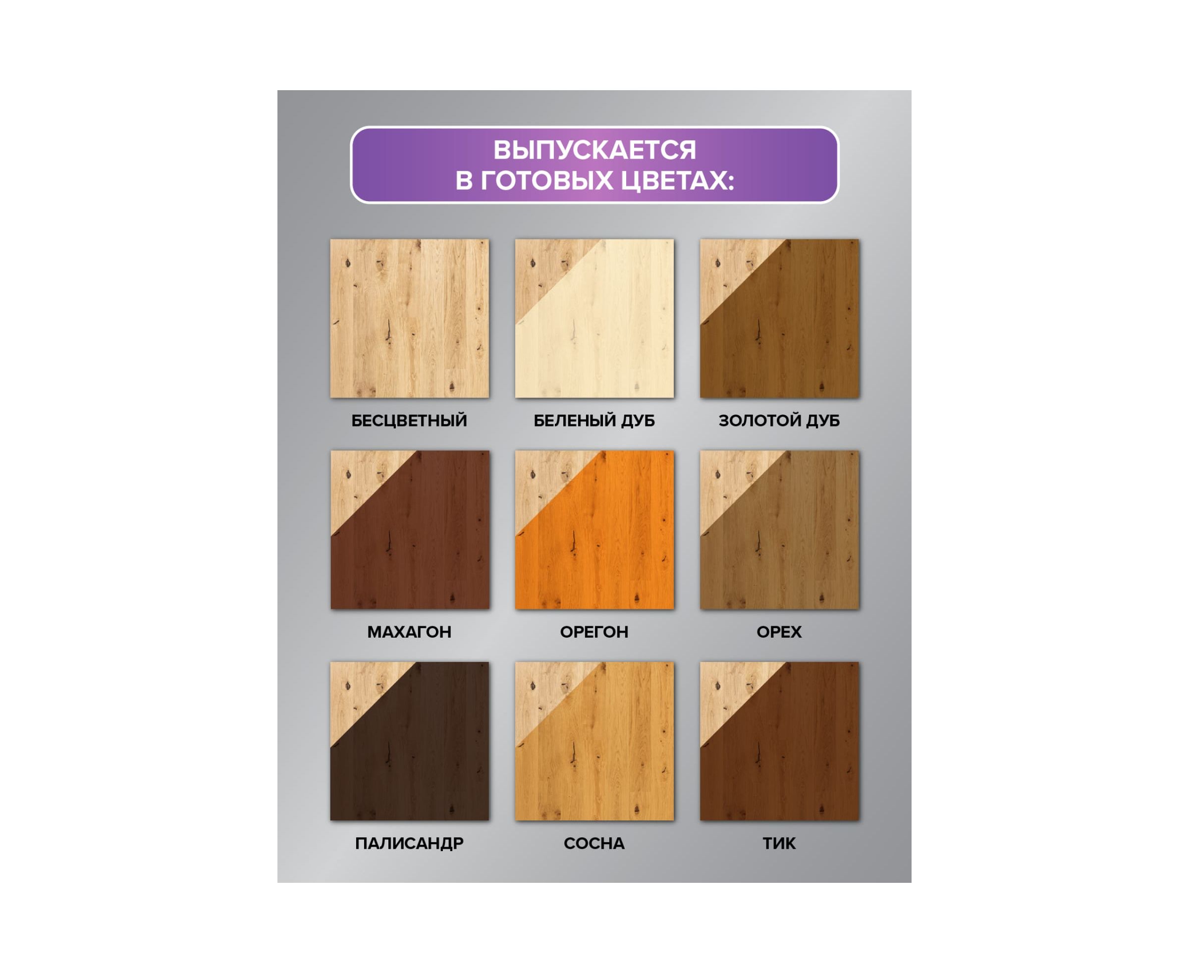 Состав предназначен для отделки и защиты деревянных поверхностей снаружи и внутри помещений (бревенчатые, дощатые стены, брус, стропила, балки, окна, двери, перегородки из плиточных материалов и фанеры и т.д.). Имитирует оттенки благородных пород древесины.