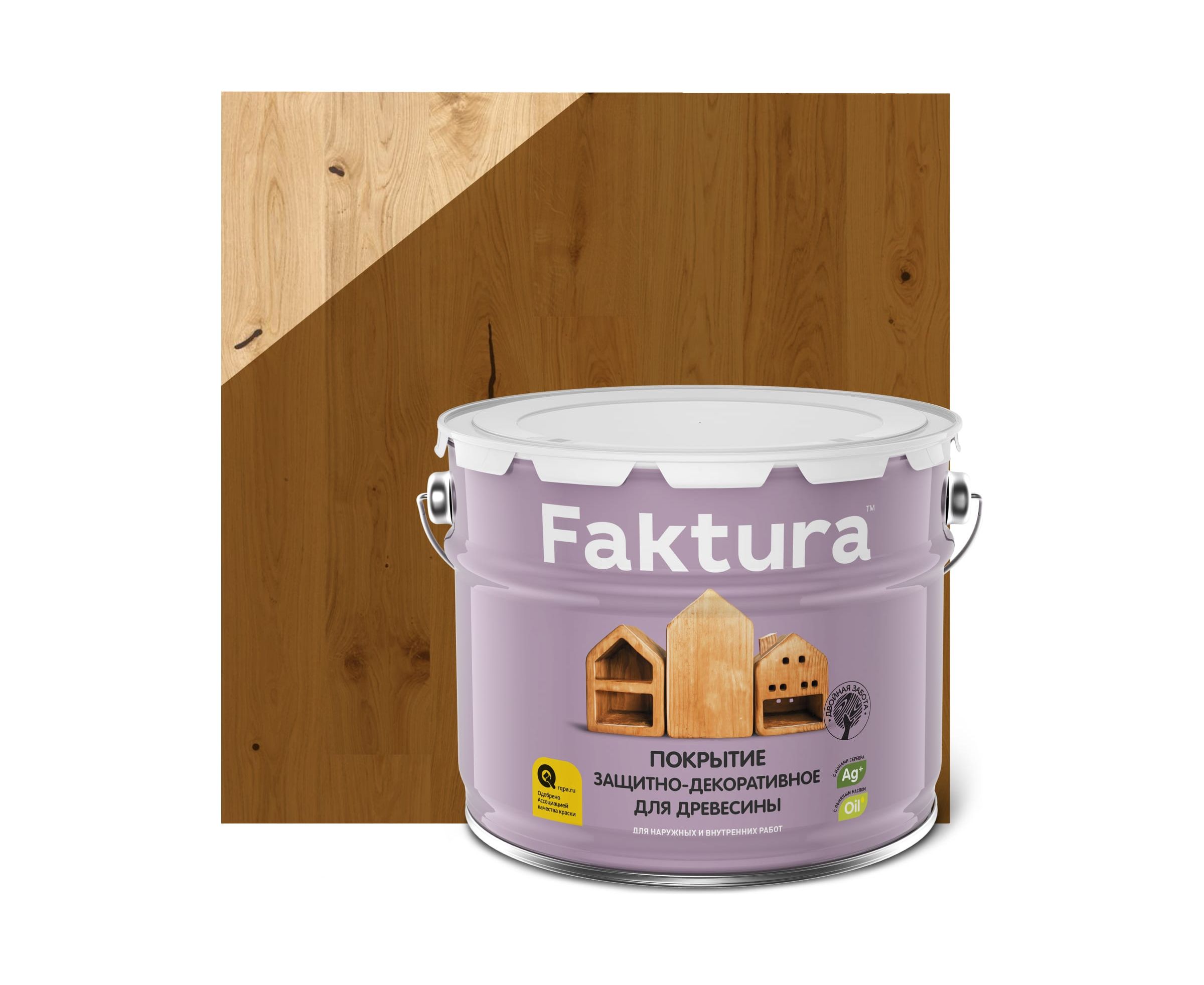 Защитно-декоративное покрытие FAKTURA с льняным маслом и ионами серебра, золотой дуб, ведро 9 л, 208465