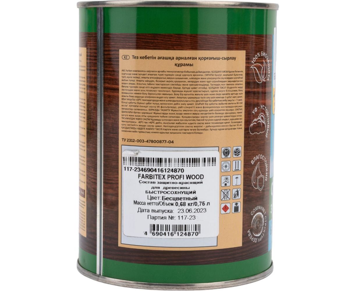 Защитно-красящий состав для древесины FARBITEX (быстросохнущий; бесцветный; 0.75 л) 4300008466