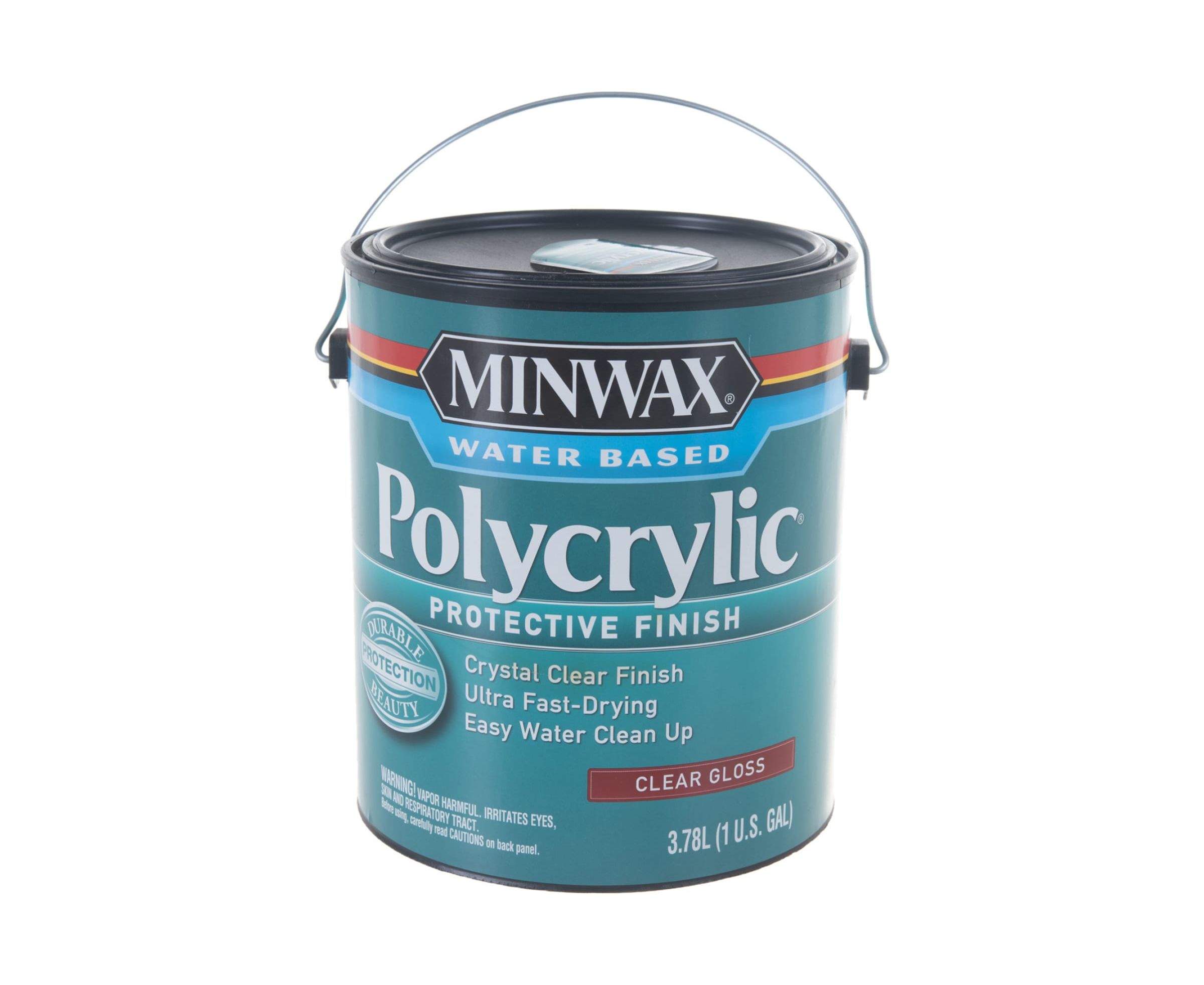 Minwax Защитное финишное покрытиеPOLYCRYCIC Глянцевый 3,785 мл 15555 - Прочное финишное защитное прозрачное быстросохнущее покрытие на водной основе для дерева. Идеально подходит для использования на поверхностях из светлой древесины таких пород как клен, ясень и береза, а также поверх морилки Minwax® на водной основе.