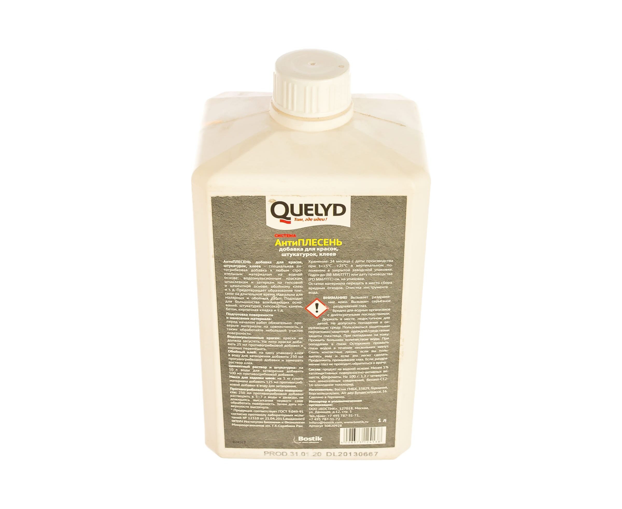 Антиплесень QUELYD Добавка для красок, штукатурок, клеев 1л 30820928 представляет собой биозащитную добавку для строительных материалов на водной основе: дисперсионных красок, шпатлевок, штукатурок, растворов для заполнения швов, обойного и плиточного клея.