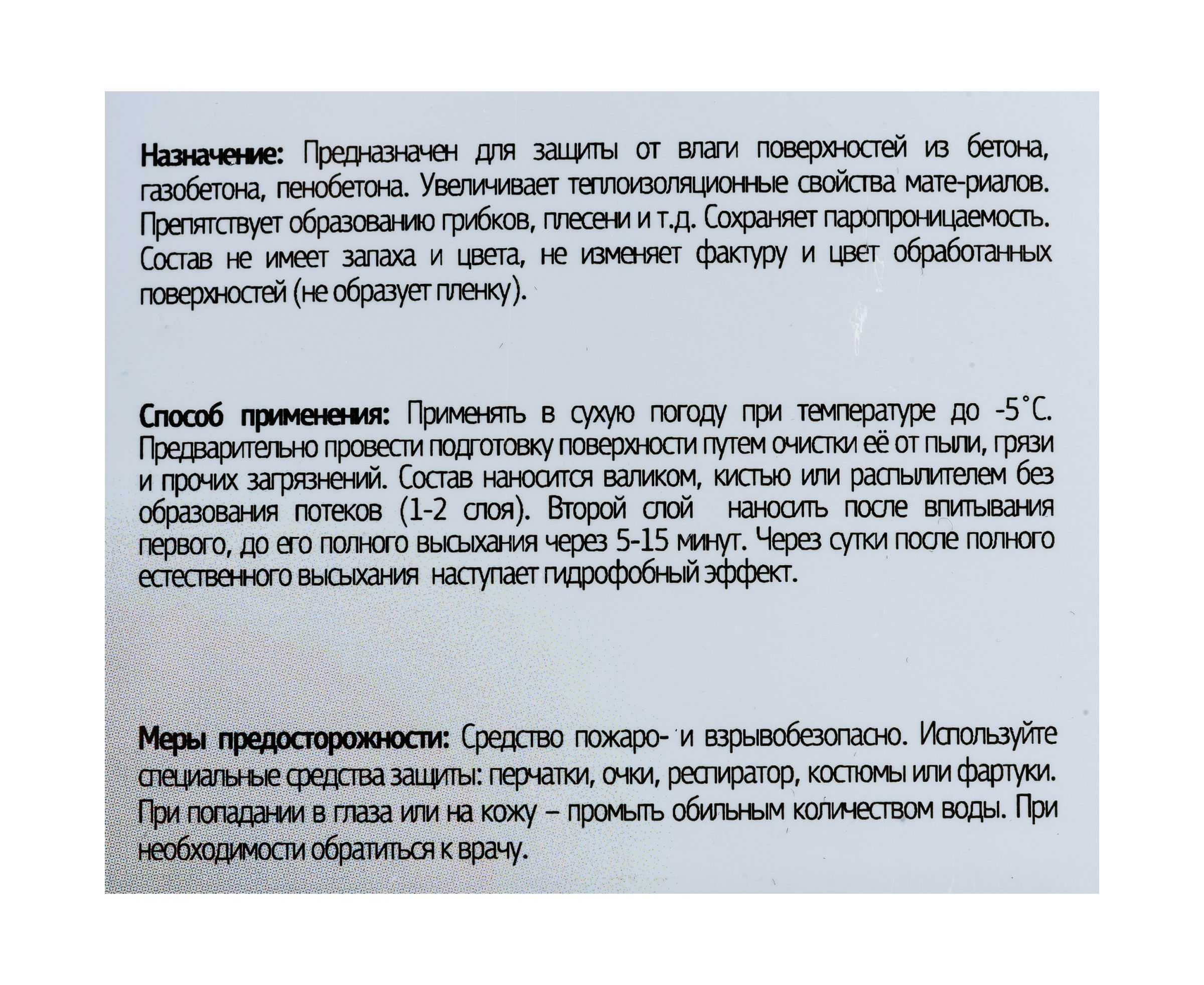 Гидрофобизатор для бетона Syntilor Hydro Beton 5кг 1216 повышает теплоизоляцию и сохраняет паропроницаемость, усиливая их полезные свойства. Продукт подходит для глубокой пропитки поверхностей из бетона, газобетона и пенобетона. Специальный раствор не имеет запаха, обеспечивает надежную защиту от воздействия воды и влаги, образования грибка и плесени.