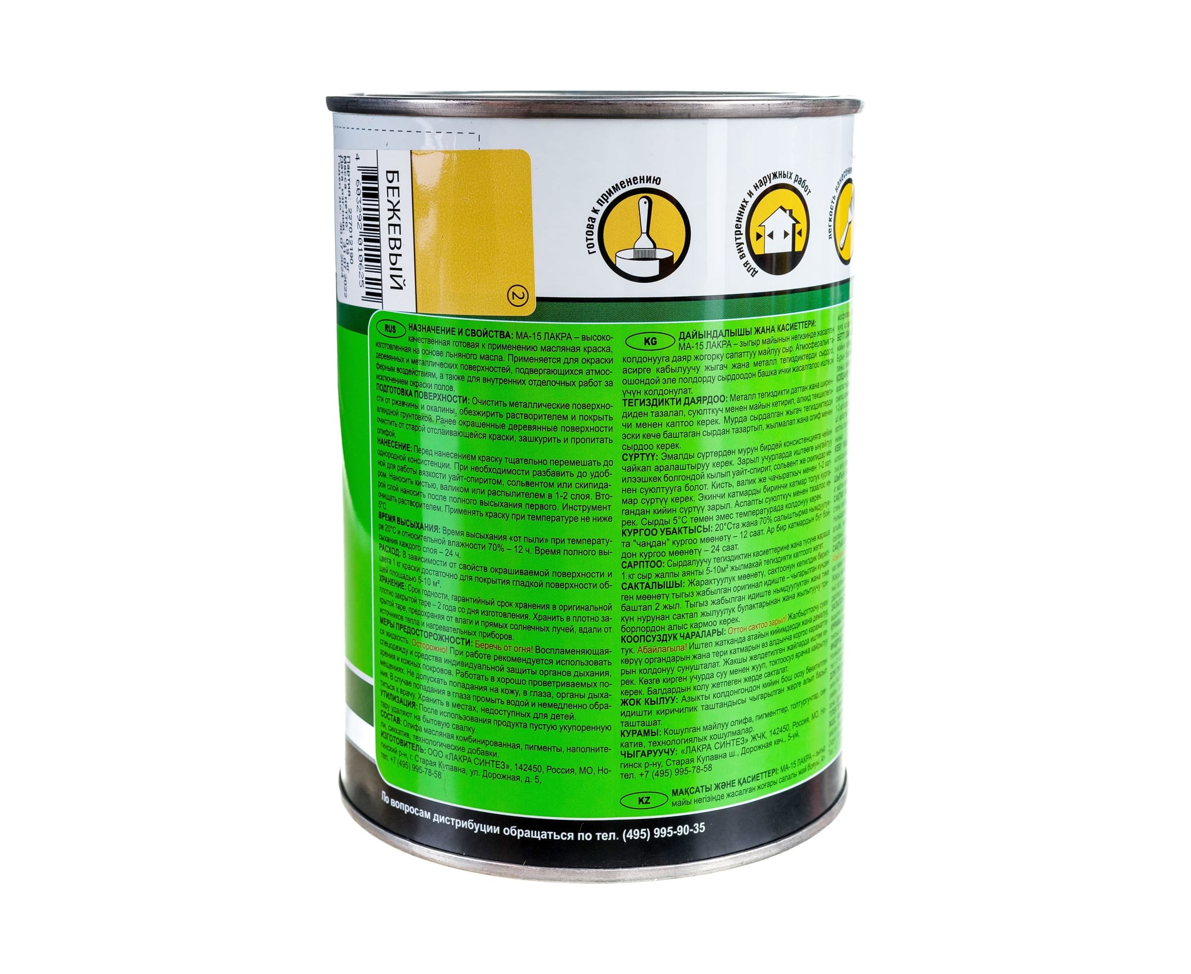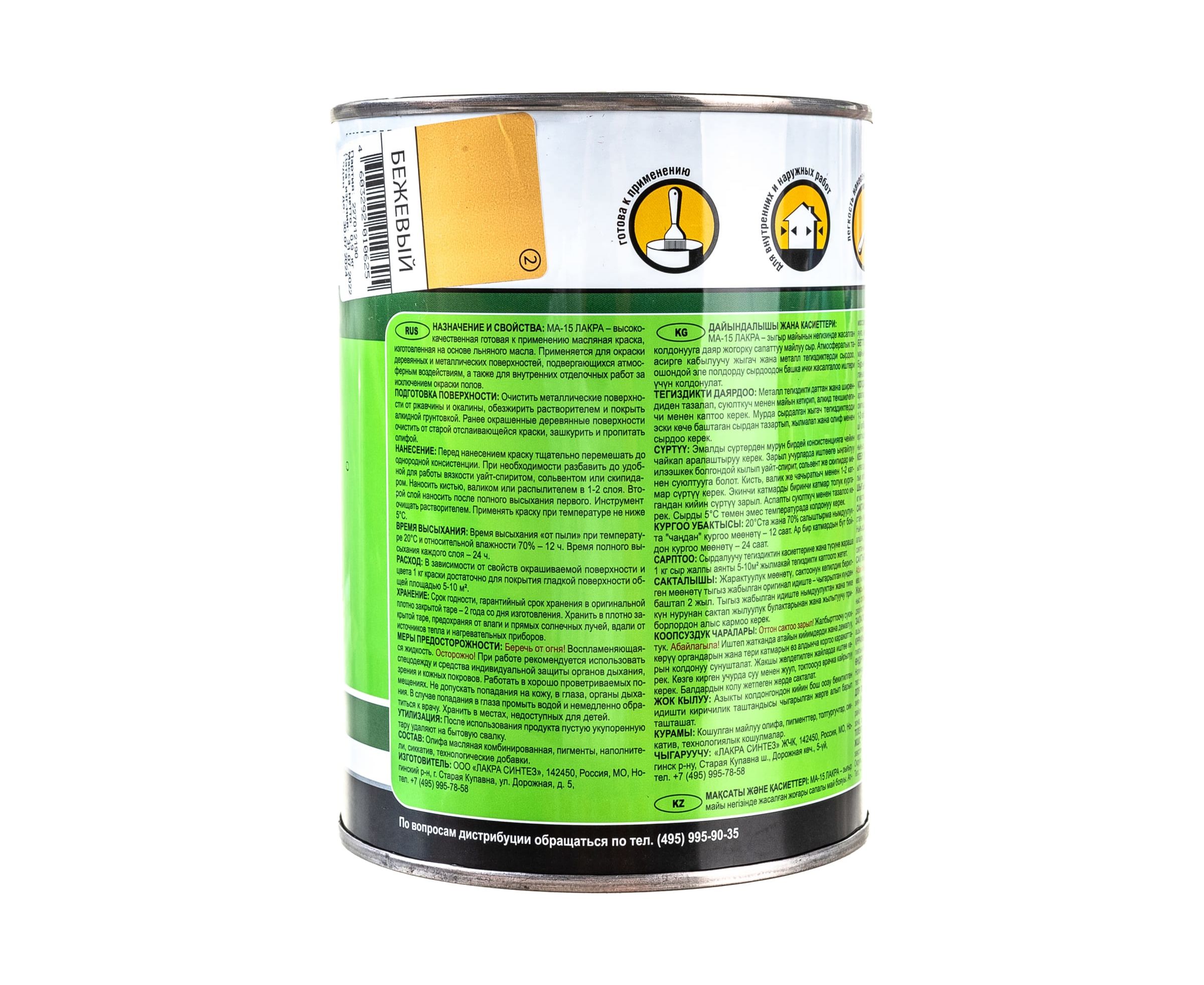 Краска Лакра МА-15 бежевая, 0.9 кг 90001968159 предназначена для нанесения на деревянные и металлические поверхности внутри и вне помещений.