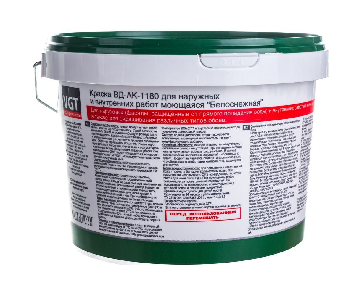 Моющаяся краска VGT белоснежная ВД АК 1180, для наружных/внутренних работ 3кг 11601904