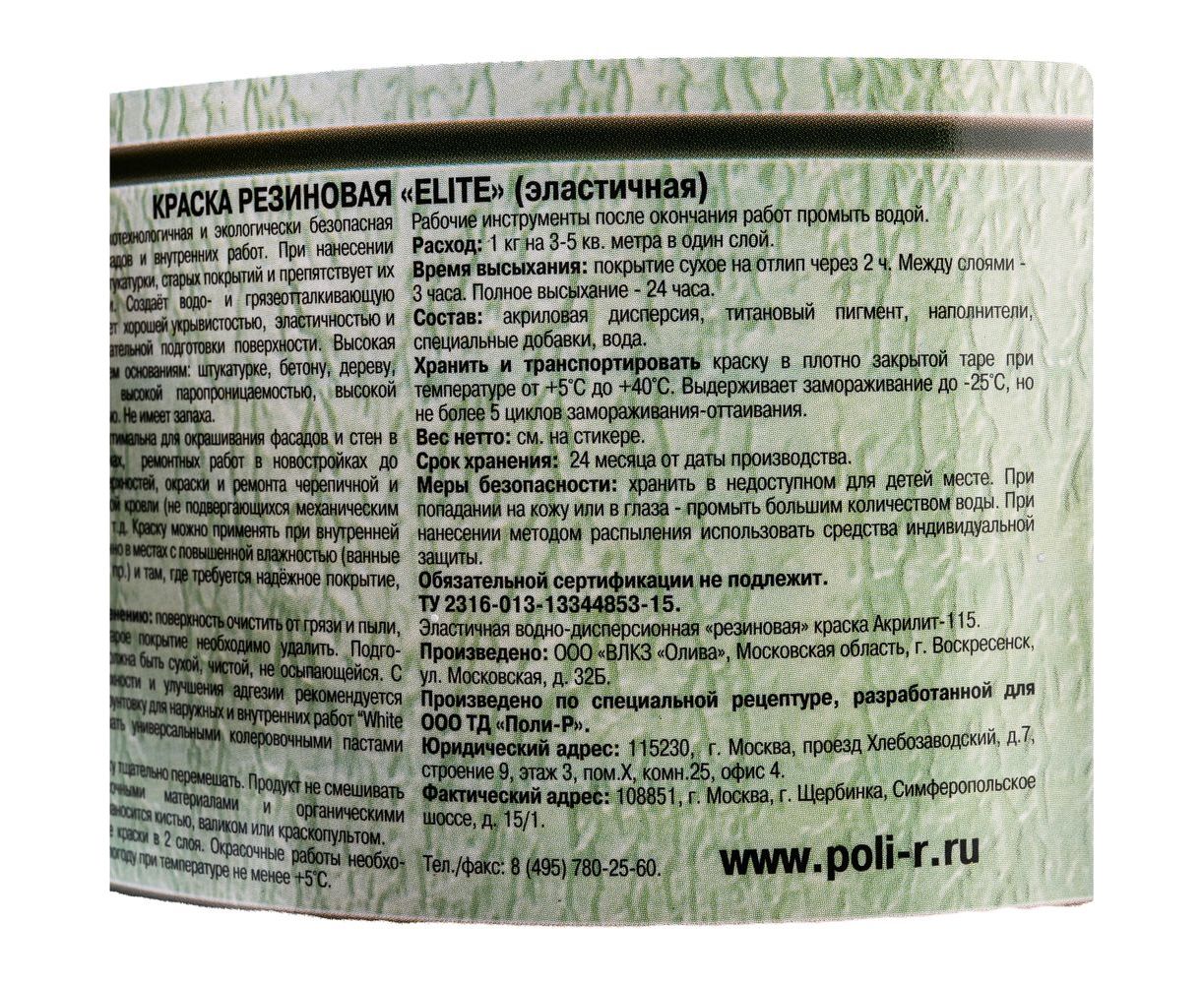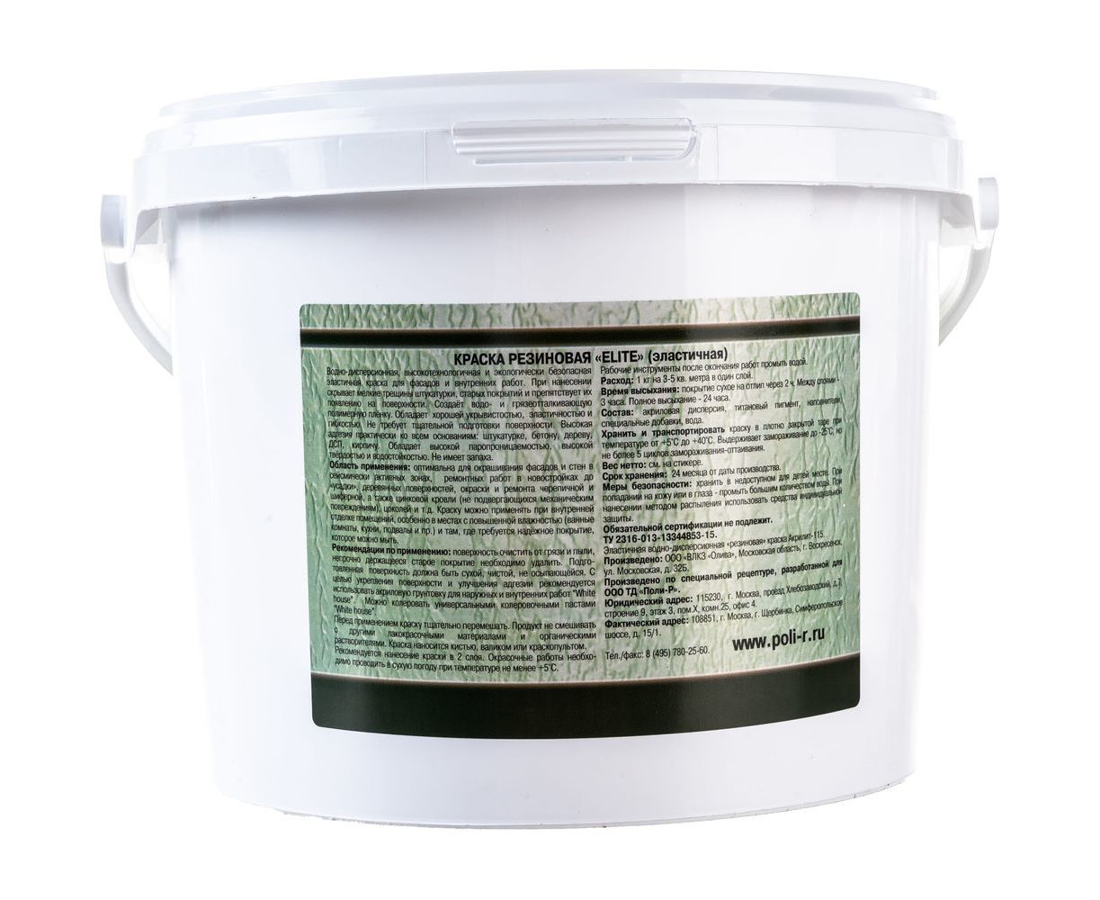 Резиновая краска White House Elite (белая; 2.5 кг) 16612 при нанесении скрывает мелкие трещины штукатурки, старых покрытий и препятствует их появлению на поверхности. Создаёт водо- и грязеотталкивающую полимерную плёнку, обладает хорошей укрывистостью, эластичностью и гибкостью. Не требует тщательной подготовки поверхности.