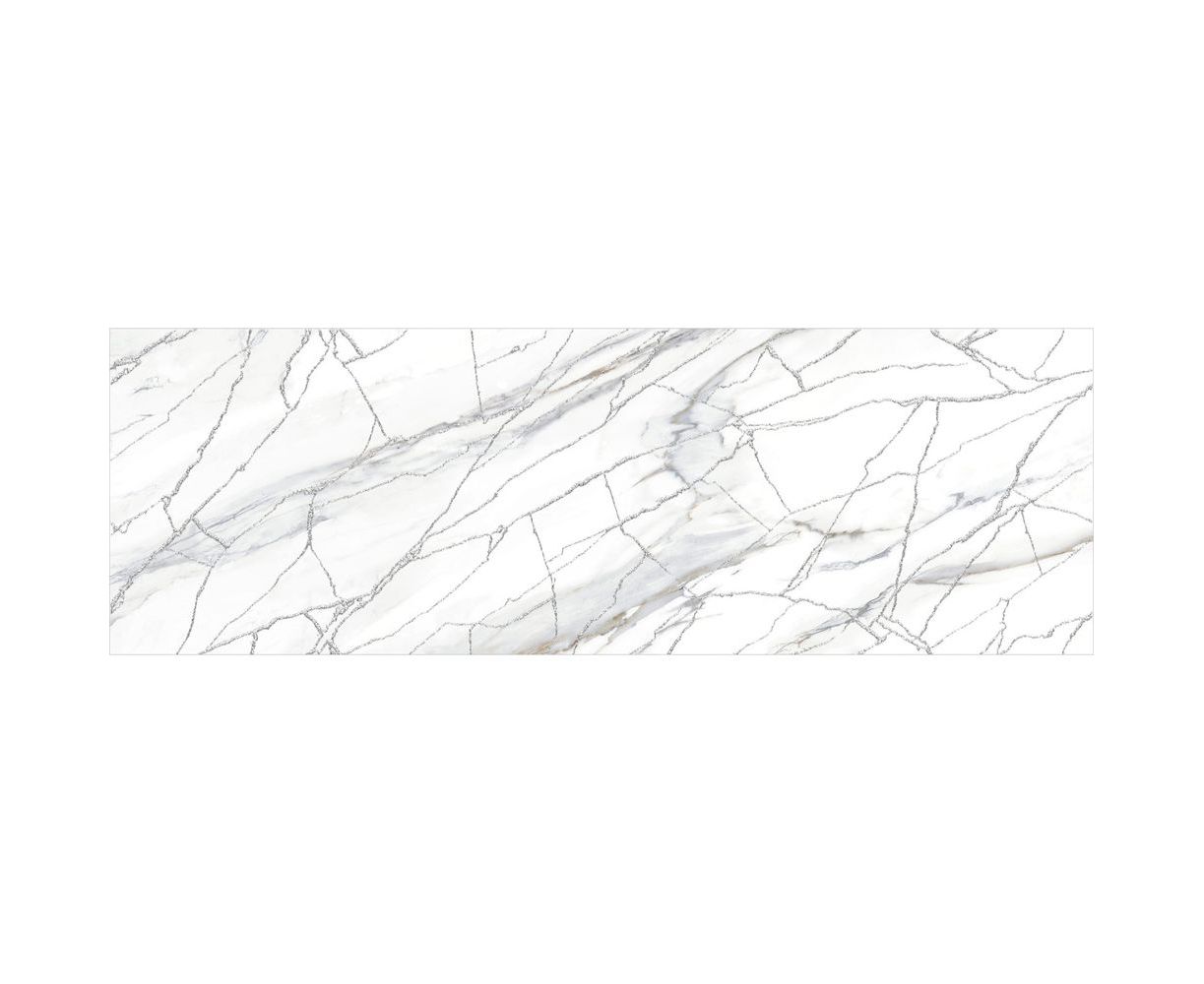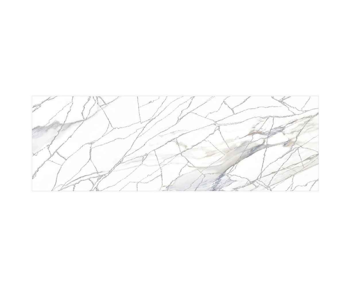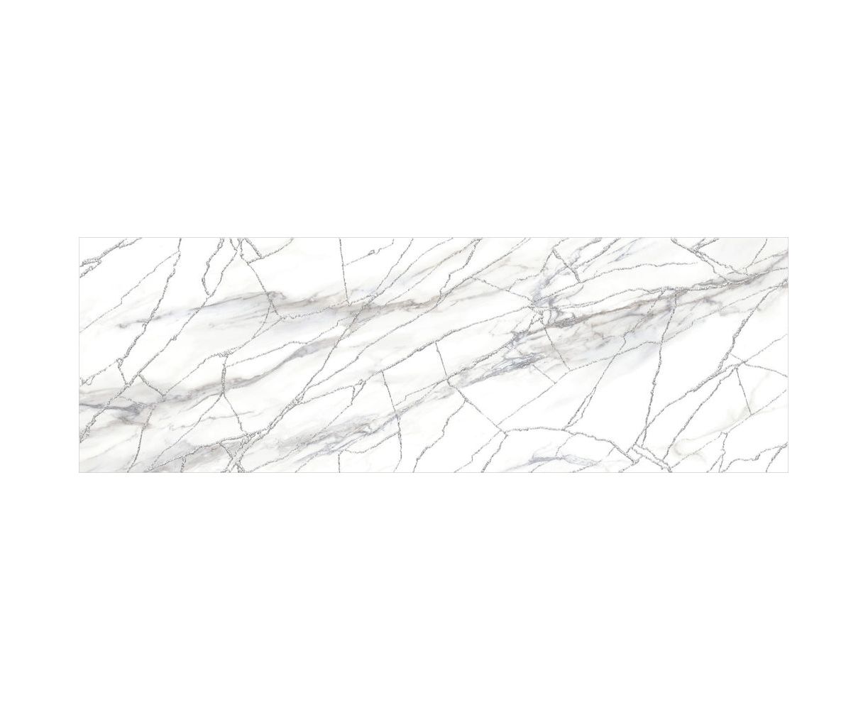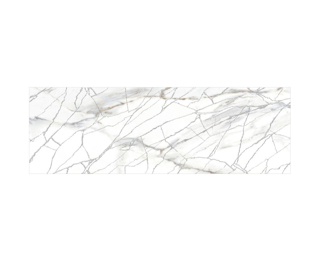 Голубая Калакатта с теплыми прожилками и многоцветный индонезийский мрамор с глубокой текстурой дополняют друг друга и сочетаются между собой по тональности. Акцентным элементом коллекции выступает витиеватая сетка из белого золота с мерцающим глиттером. Этот декор стыкуется и создаёт в интерьере современный разноразмерный узор, который переливается и играет от лучей света, направленных на него.
