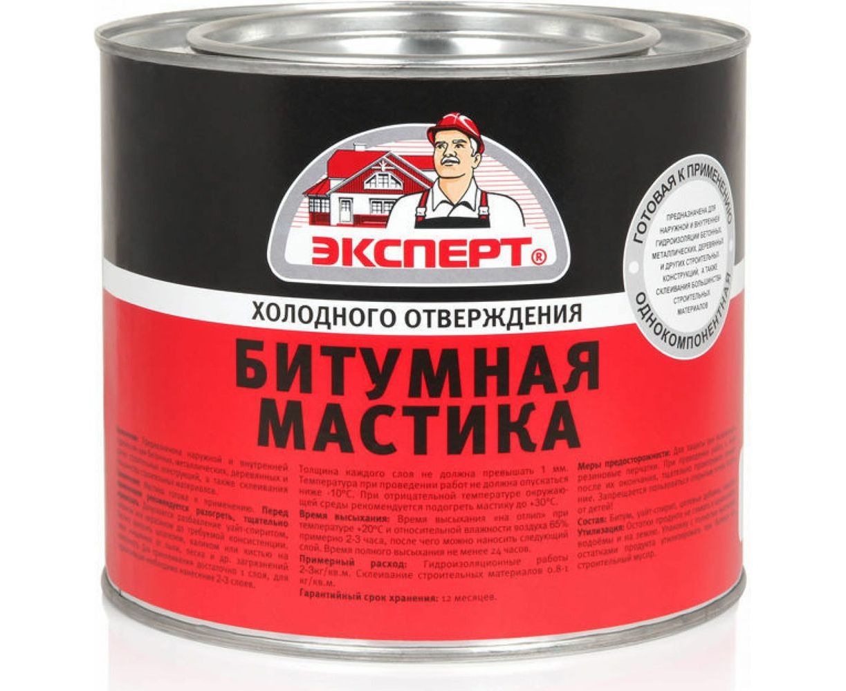 Битумная мастика ЭКСПЕРТ холодного отверждения, 1.8 кг 18608 применяется для наружной и внутренней гидроизоляции строительных конструкций, а также склеивания большинства строительных материалов.