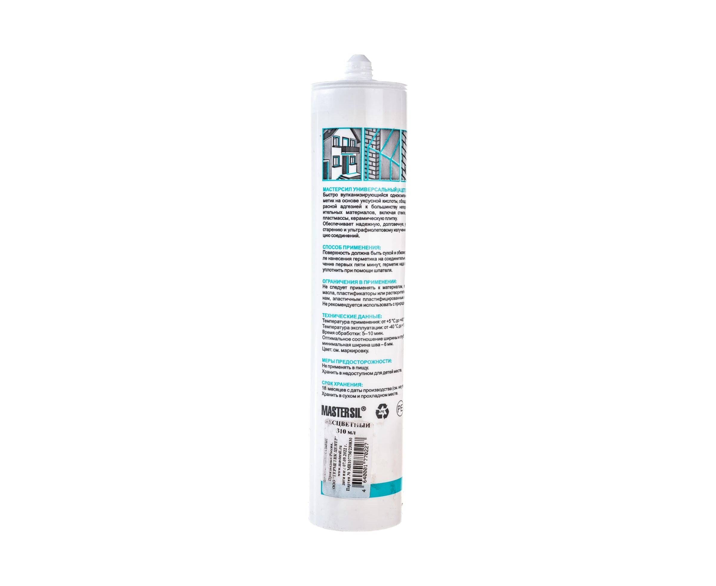 Cиликоновый герметик Mastersil (универсальный; бесцветный; 310 мл) 1355/C – это однокомпонентный нейтральный низкомодульный герметик с превосходной адгезией, разработанный для применения в строительстве для общих стекольных работ и наружной всепогодной герметизации. Идеально подходит для работы с натуральным камнем, герметизации соединительных и расширительных швов, а также для герметизации швов между оконным стеклом и опорной конструкцией. Быстровулканизирующийся, стоек к озону, ультрафиолетовому излучению и экстремальным температурам. Подходит для непрофессионального использования. Вулканизируется под воздействием атмосферной влажности, в результате образуется долговременная эластичная силиконовая резина.