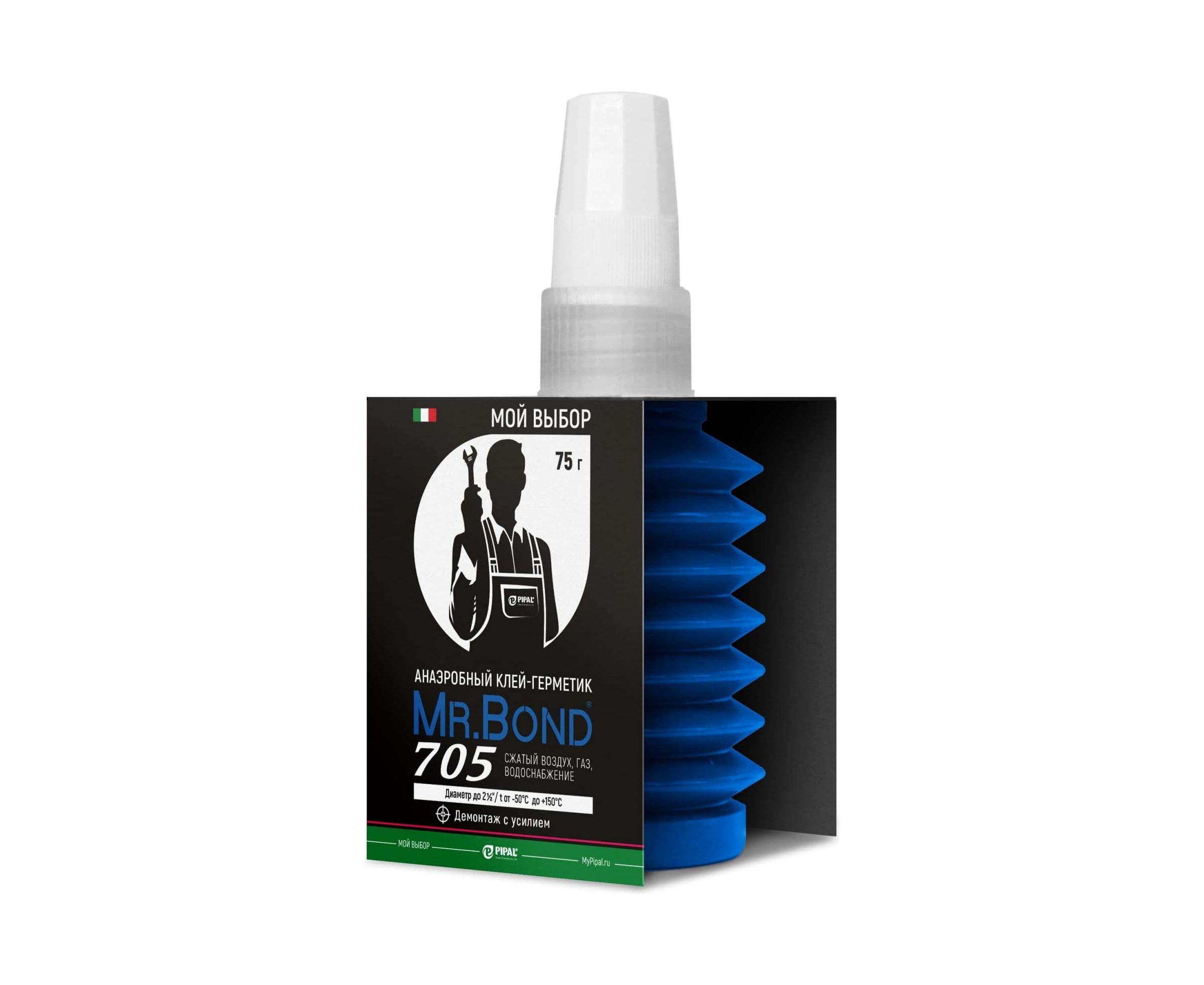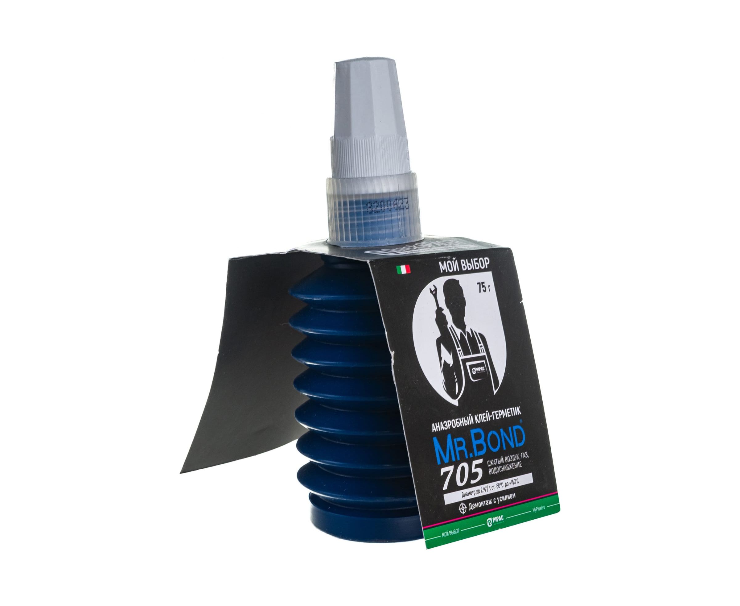 Анаэробный клей-герметик Mr.Bond 705 демонтаж с усилием 4070500075P используют для надежной фиксации резьбовых соединений труб и фитингов во время монтажа систем водоснабжения, газоснабжения и отопления. Экологически чистый продукт подходит для металлических деталей (хром, цинк, латунь, сталь, гальваника, чугун) и большинства гидравлических систем. Состав быстро заполняет зазоры, полости и щели, вытесняя кислород. Клеевой шов выдерживает длительное воздействие воды, газа, сжатого воздуха и бензина.