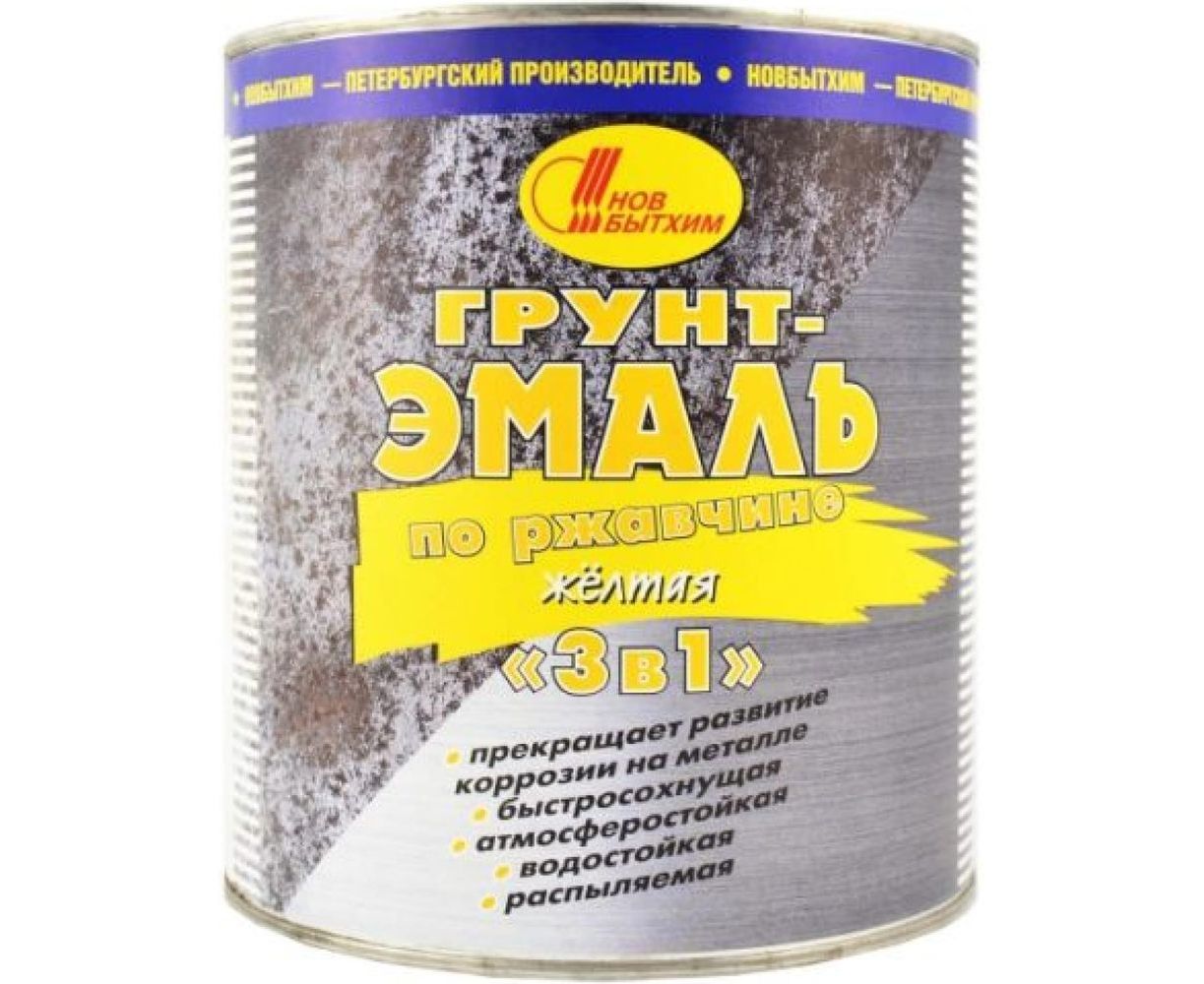 Грунт-эмаль по ржавчине 3в1 НОВБЫТХИМ желтая 3 л 1/6 16436 предназначена при внутренних и наружных работах для окрашивания металлических конструкций: решетки, ограды, гаражи и ржавые детали в автомобиле.