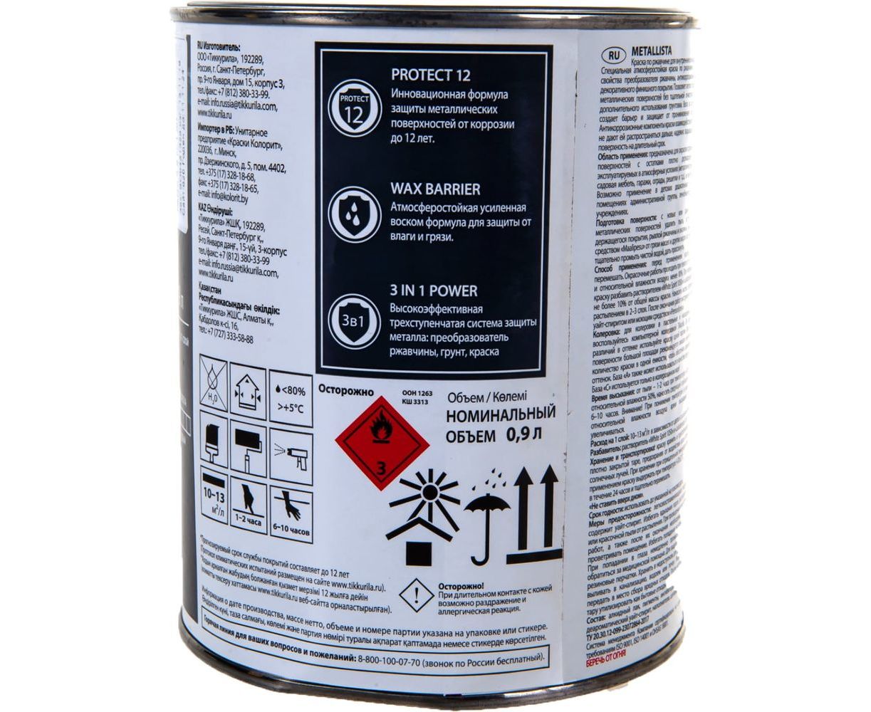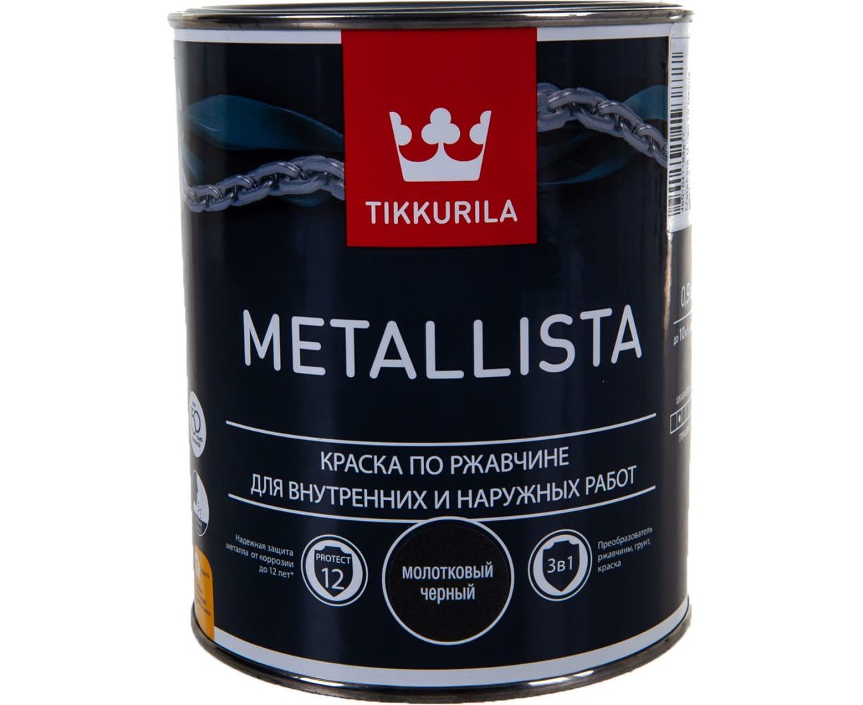 Краска TIKKURILA METALLISTA по ржавчине 3 в 1, молотковая, глянцевая, черный 0,9л 700011718