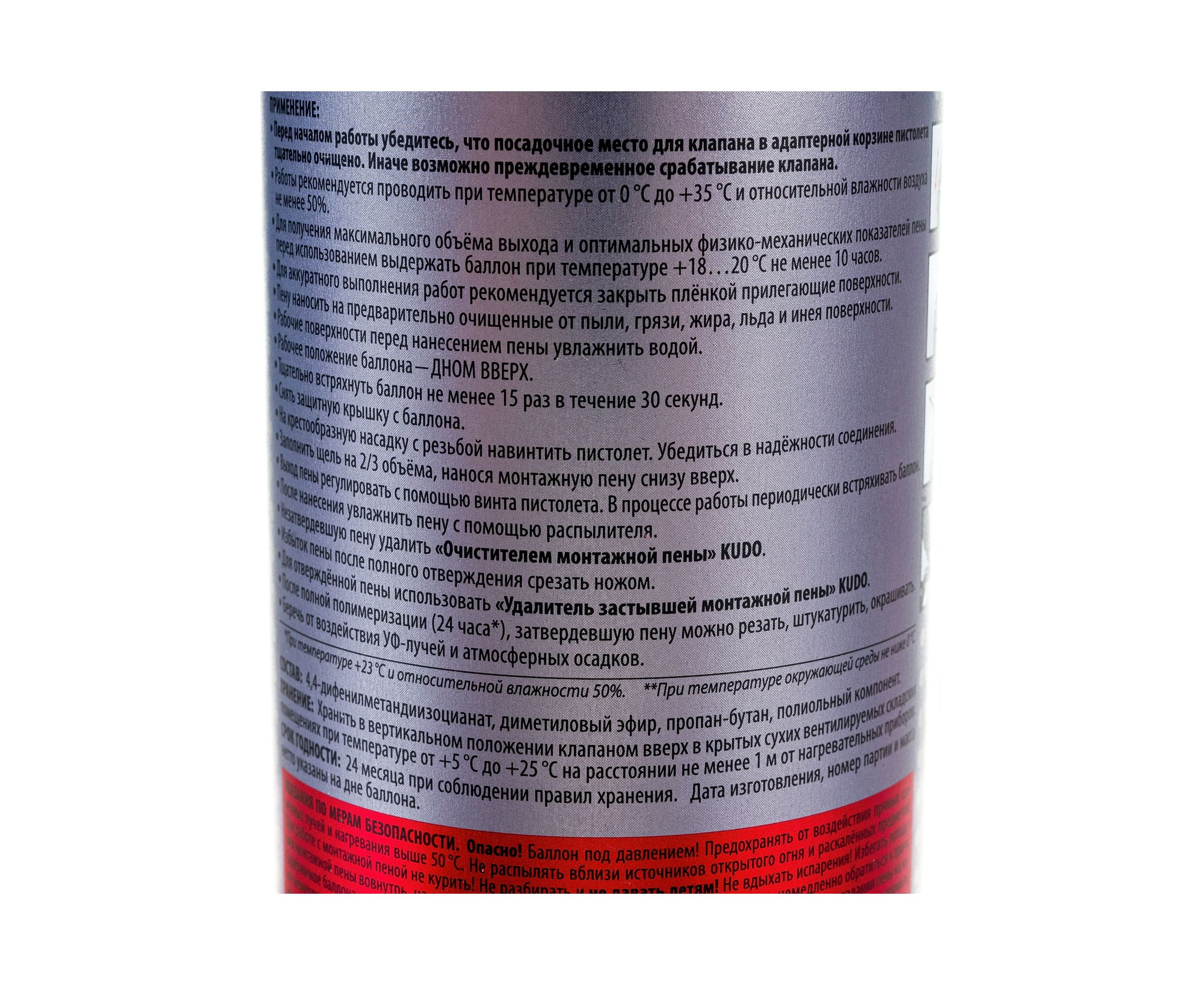 Полиуретановая монтажная пена KUDO PROFF 70+ 11590261