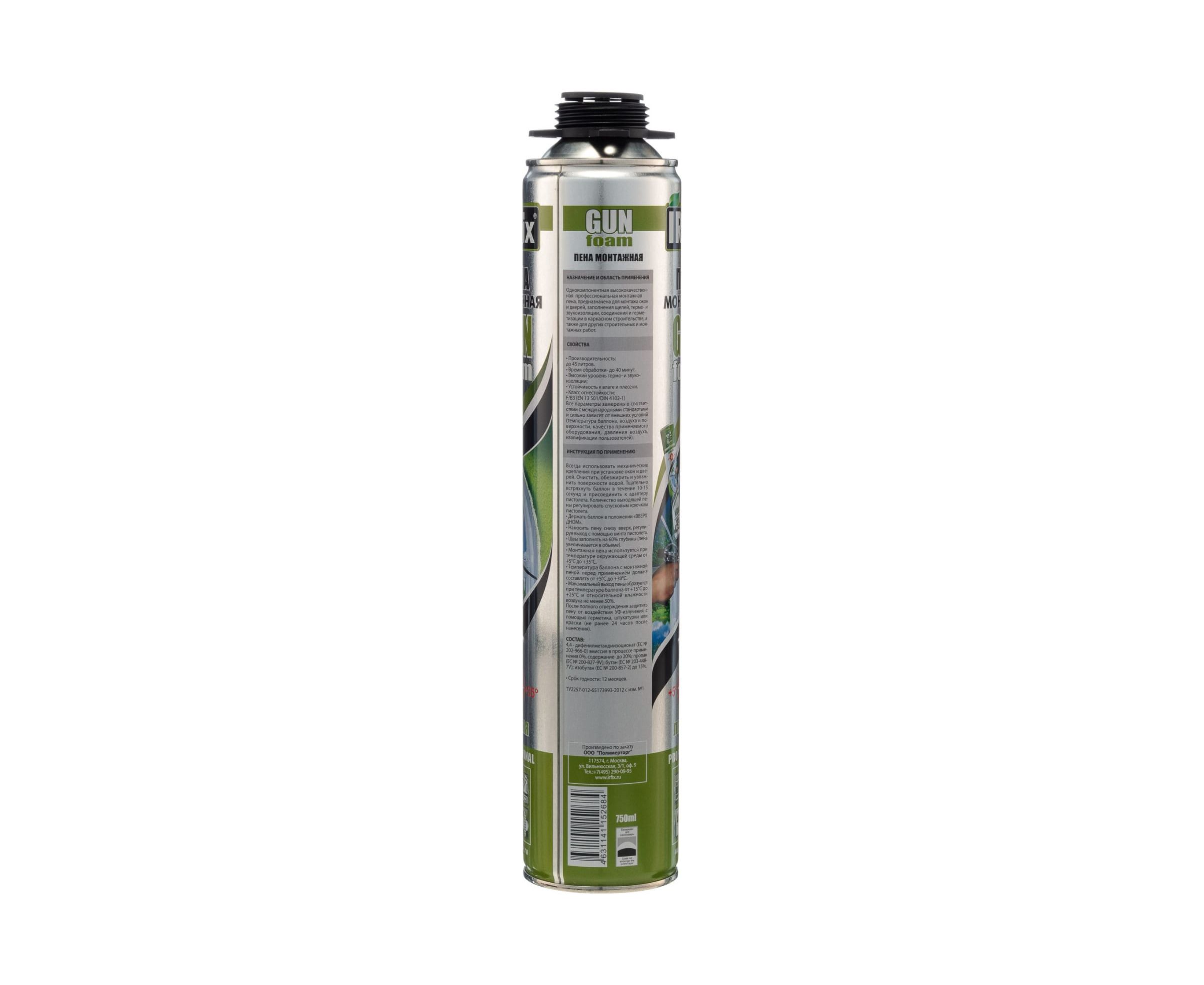Профессиональная монтажная пена IRFIX GUN 750 мл 10002 используется внутри и снаружи помещений для заполнения пустот, швов, тепло- и звукоизоляции, монтажа технических коммуникаций.