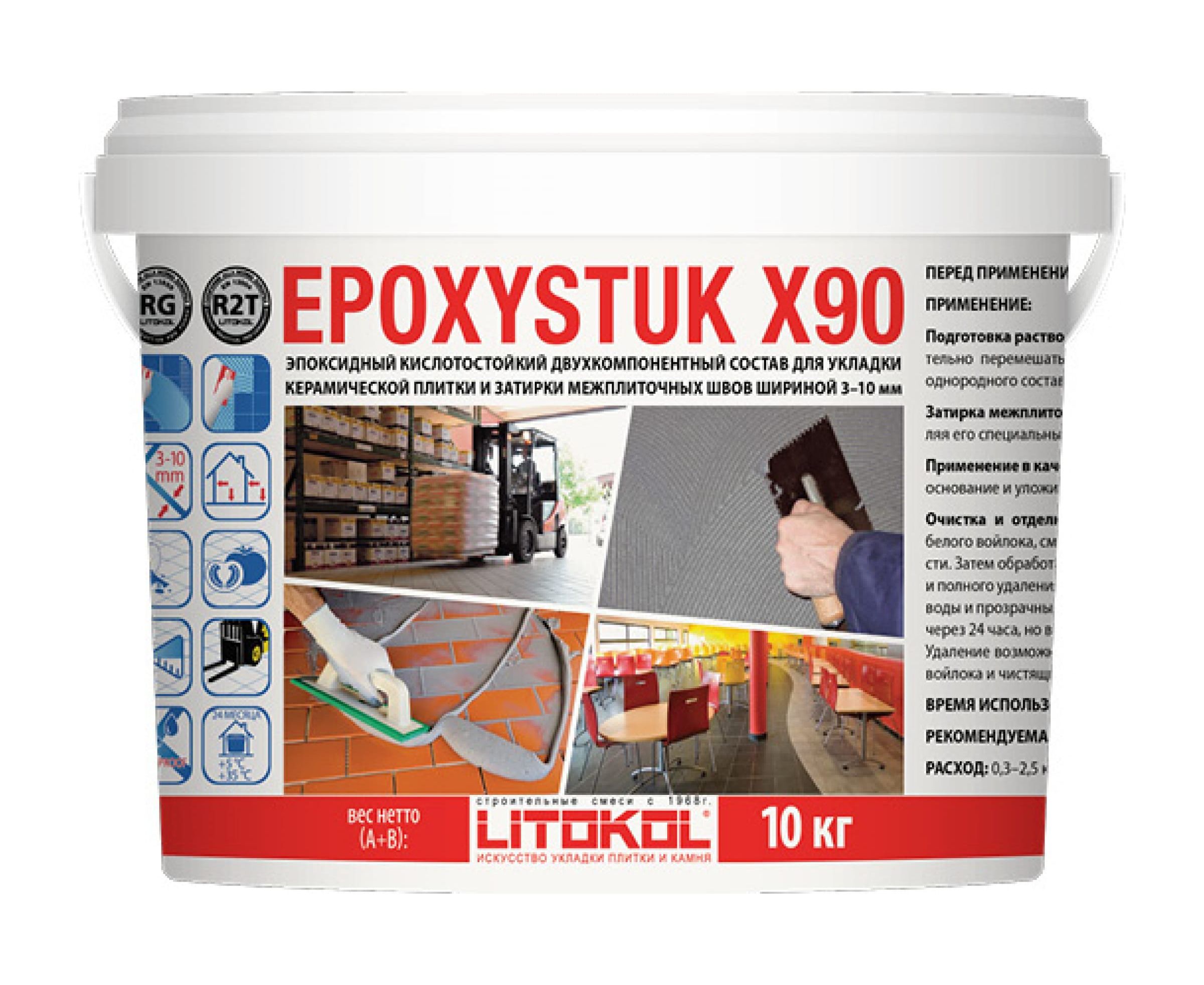 Эпоксидная затирочная смесь LITOKOL EPOXYSTUK X90 C.00 BIANCO 10 кг 479350002 представляет собой двухкомпонентный кислотостойкий, щелочестойкий затирочный состав. Компонент А состоит из смеси эпоксидных смол, кремниевых заполнителей и добавок. Компонент B состоит из смеси отвердителей органического происхождения. После смешивания компонентов А и B получается средство, которое можно использовать в качестве клея для плитки или затирки межплиточных швов.