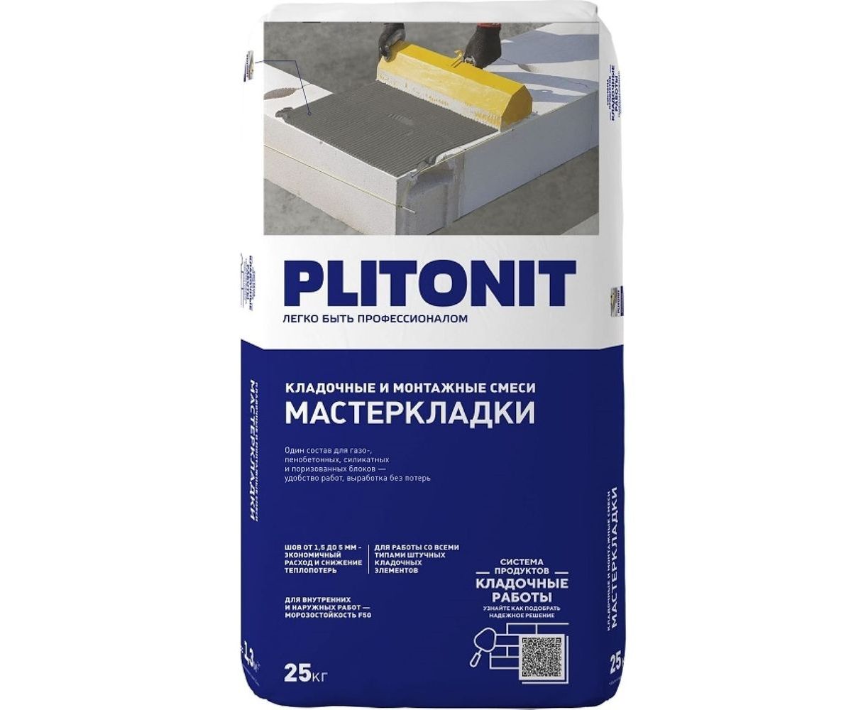 Многофункциональный кладочный раствор PLITONIT Мастер Кладки 25 кг 15975 предназначен для укладки блоков из ячеистого бетона, газобетона, пенобетона, служит клеем для силикатных и поризованных керамических блоков при производстве внутренних и наружных работ.