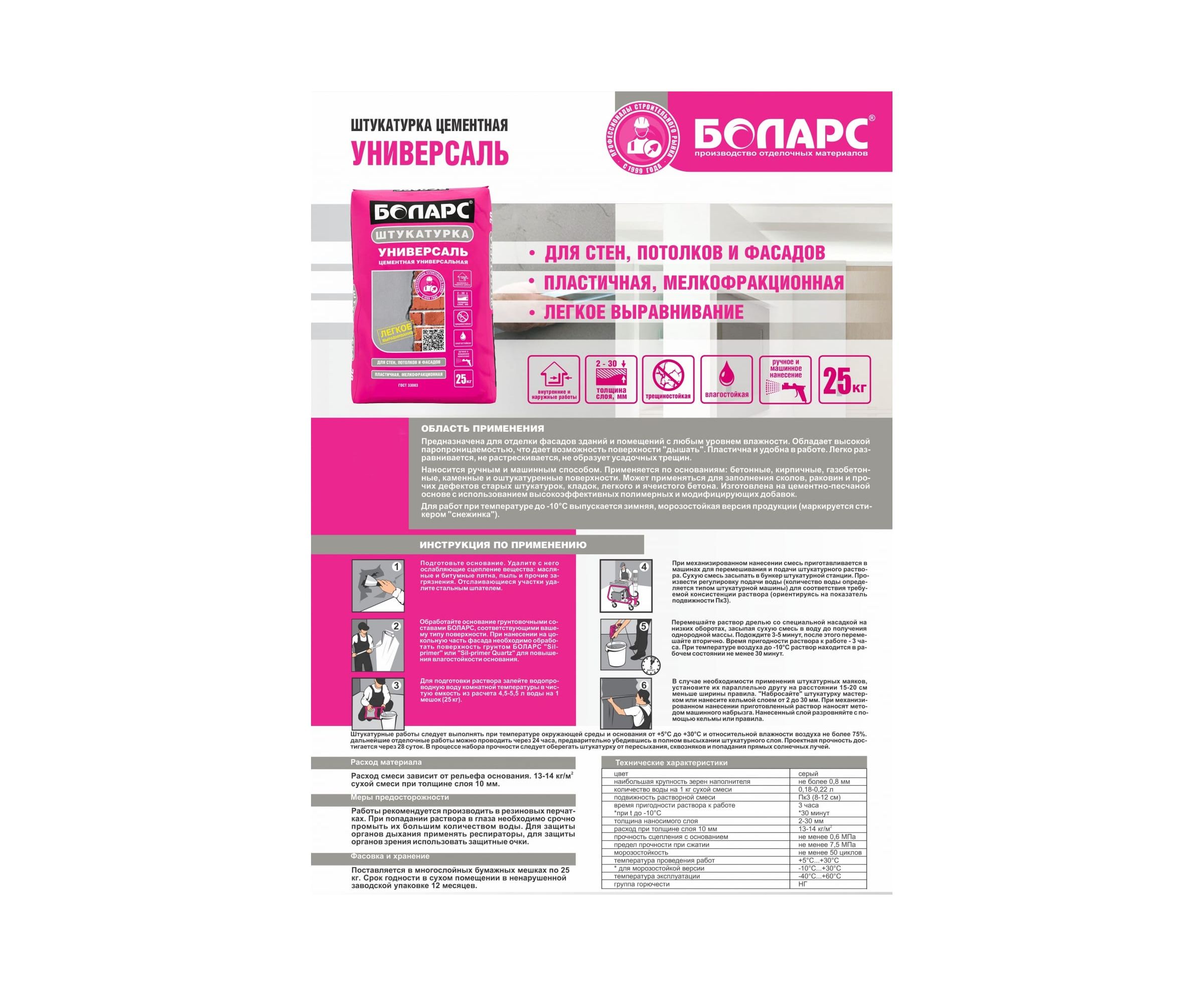 Цементная универсальная штукатурка БОЛАРС УНИВЕРСАЛЬ 25 кг 00000040984