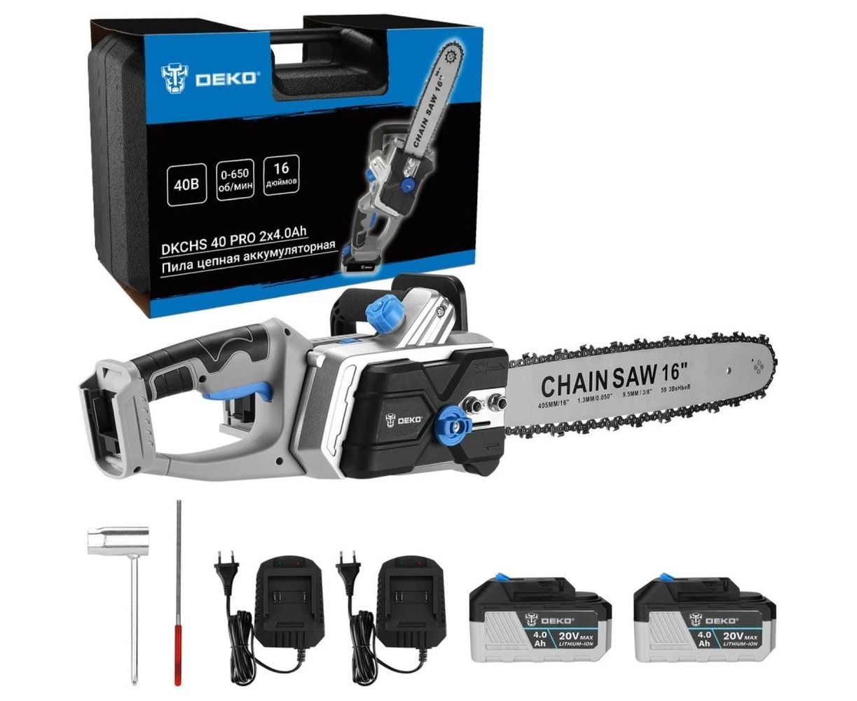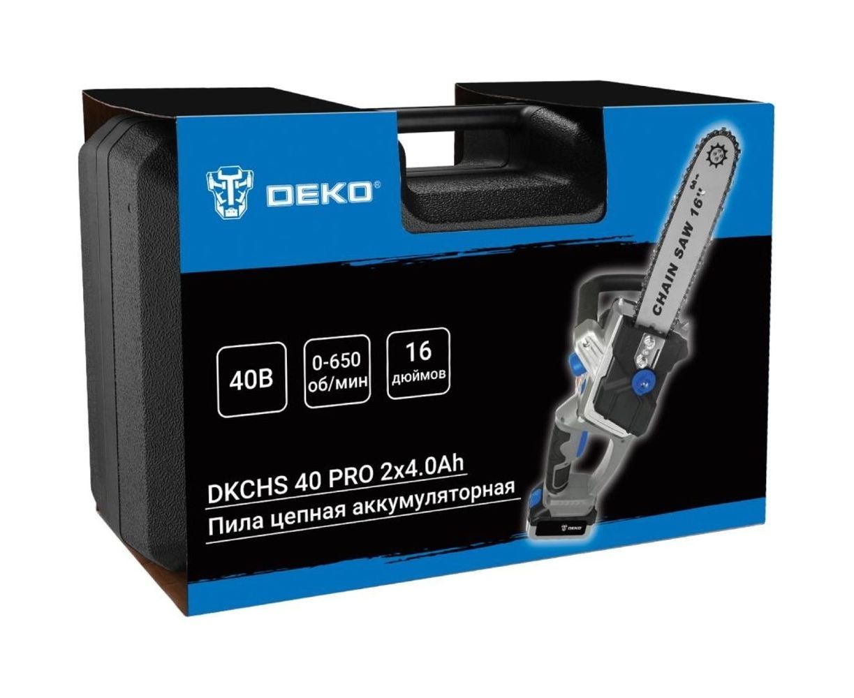 Цепная аккумуляторная пила DEKO dkchs 40 pro в кейсе, 2x20 в, 2x4.0 ач, 2 зарядных устройства 3638 063-4357