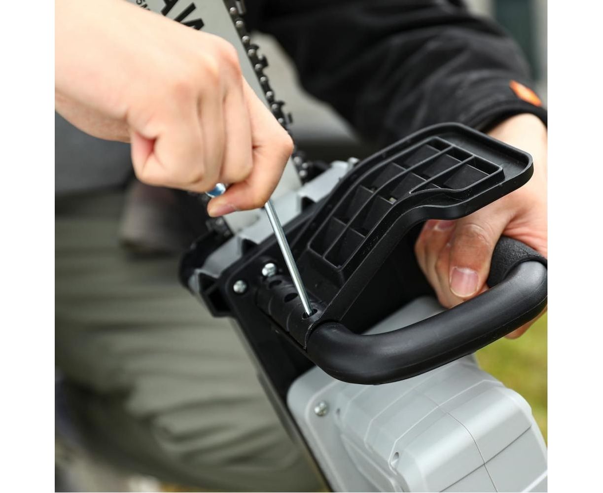 Пила цепная аккумуляторная DKCHS 40 PRO применяется при работе в мастерской или в саду для распиливания различных материалов. Предназначена для пропилов в древесине и пластмассе.