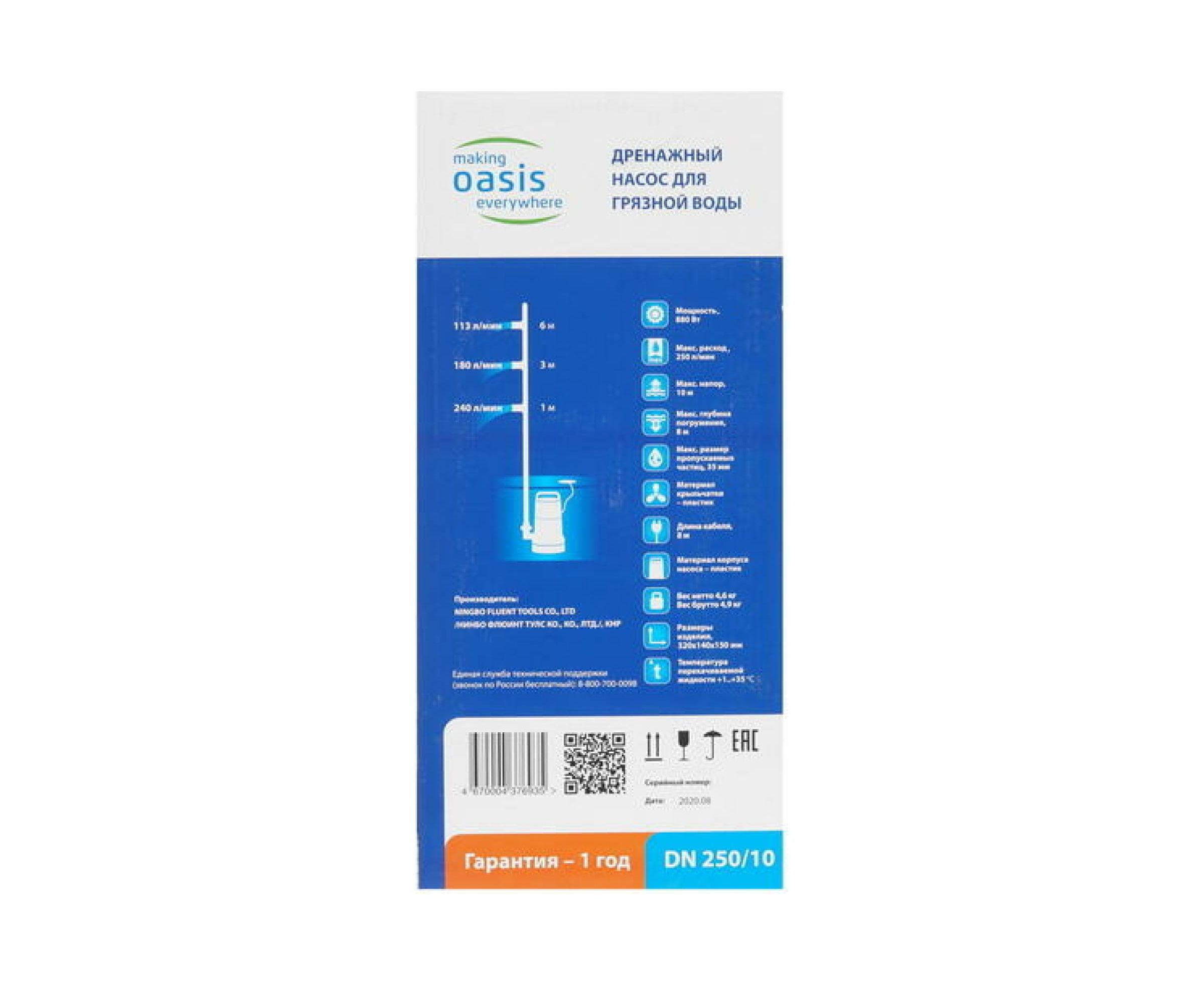 Дренажный насос для грязной воды Oasis 250/10 4670004376935