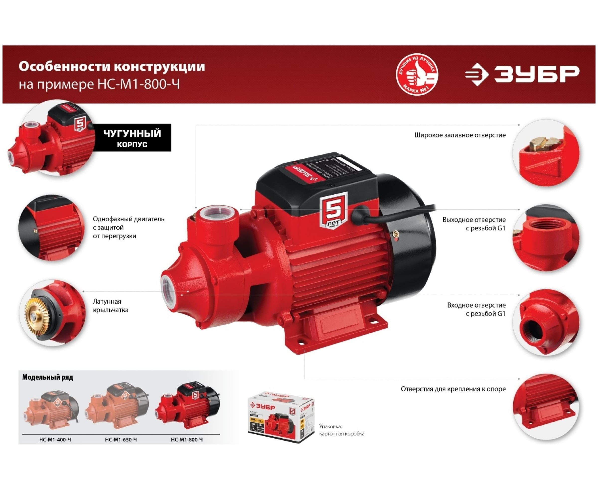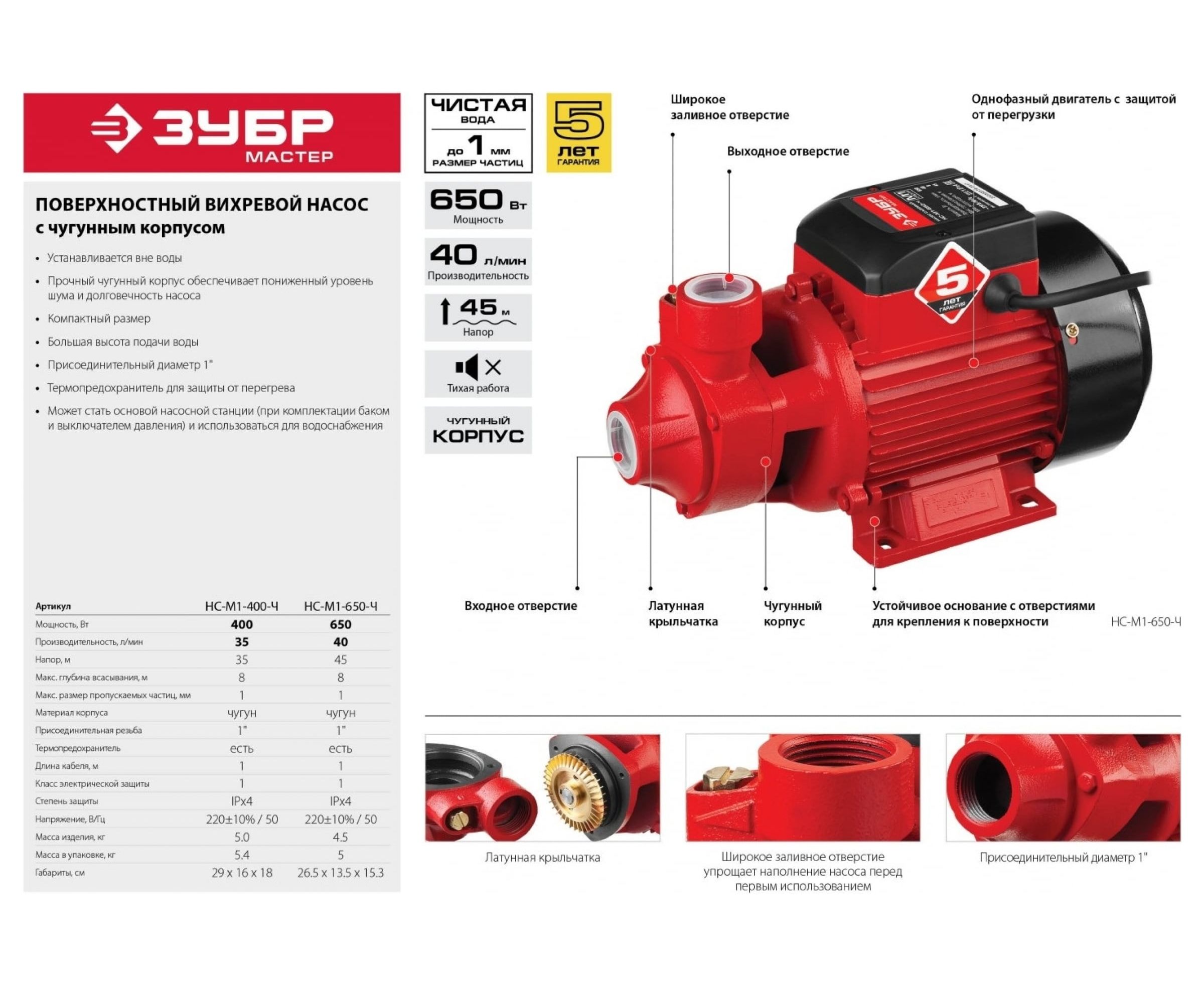 Поверхностный вихревой насос ЗУБР 400 Вт НС-М1-400-Ч