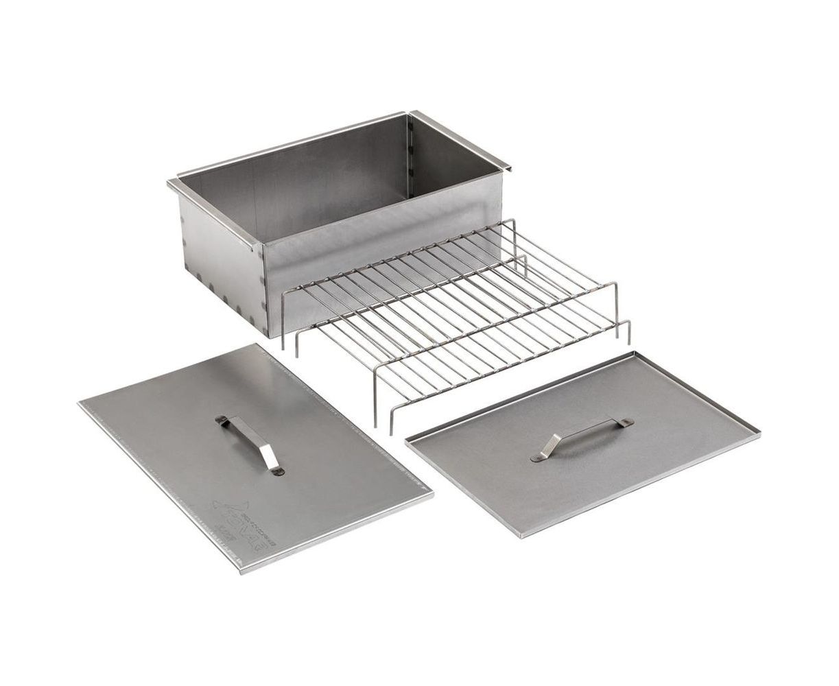 Двухъярусная коптильня с поддоном для сбора жира Тонар 450x280x170 мм, сталь 1.5 мм К-002 071803 используется для горячего копчения сала, мяса, рыбы и дичи на открытом воздухе.
