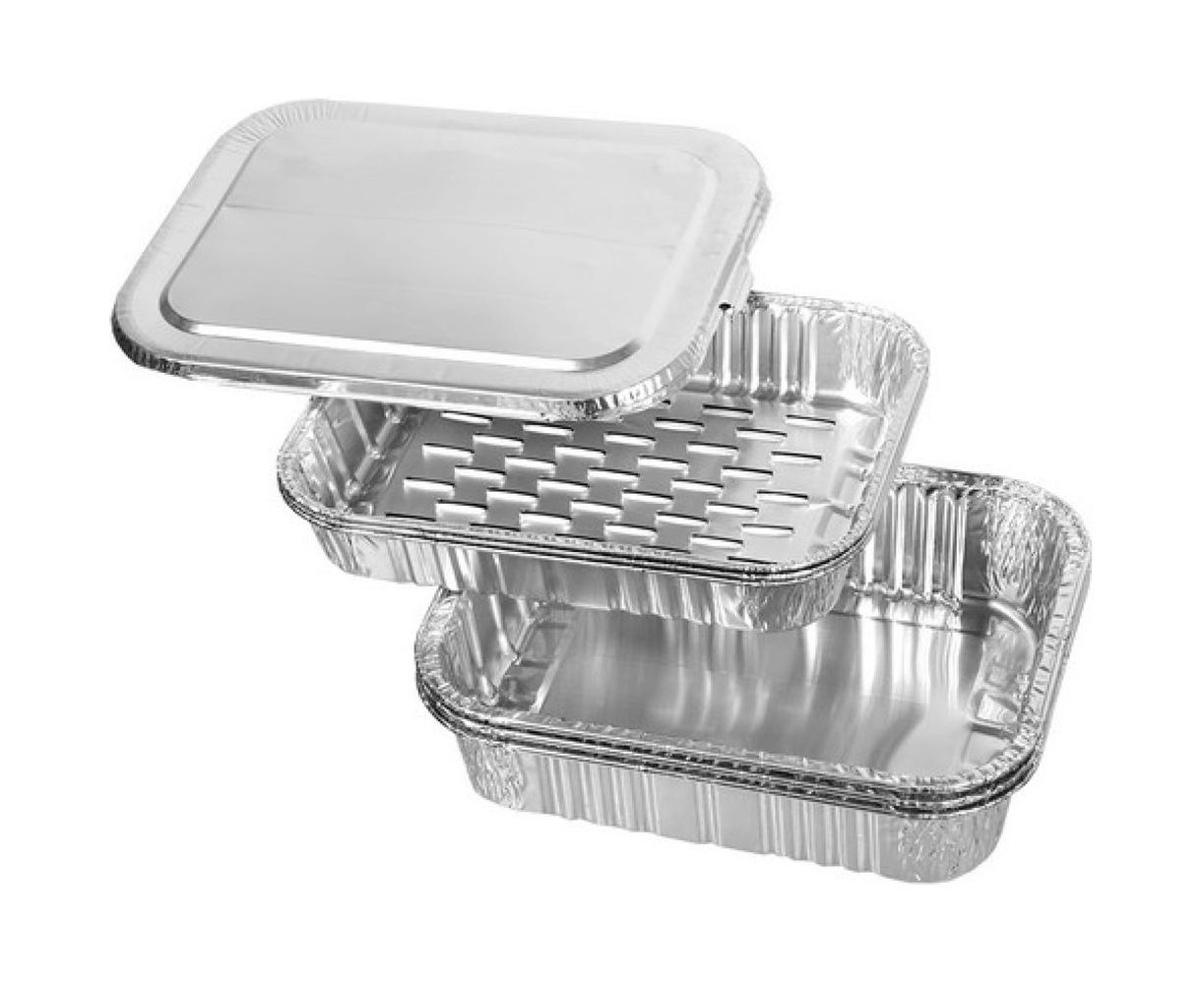Коптильня одноразовая BOYSCOUT 20х15 см, 3 шт. в наборе / 22 61277 — набор из трех одноразовых коптилен для горячего копчения рыбы, мяса, птицы, сыра, морепродуктов. К каждой коптильне прилагается щепа ольхи, благодаря которой продукты приобретают красивый светло-бронзовый цвет. Продукты для копчения следует предварительно замариновать, после чего сложить в лоток с перфорацией. Щепа ровным слоем укладывается на дно большого лотка, в который затем ставится лоток с продуктами. Все закрывается крышкой, с краев фольгу следует прижать, после чего коптильню можно ставить на угли. Копчение занимает от 10 до 25 минут, в зависимости от выбранного продукта.