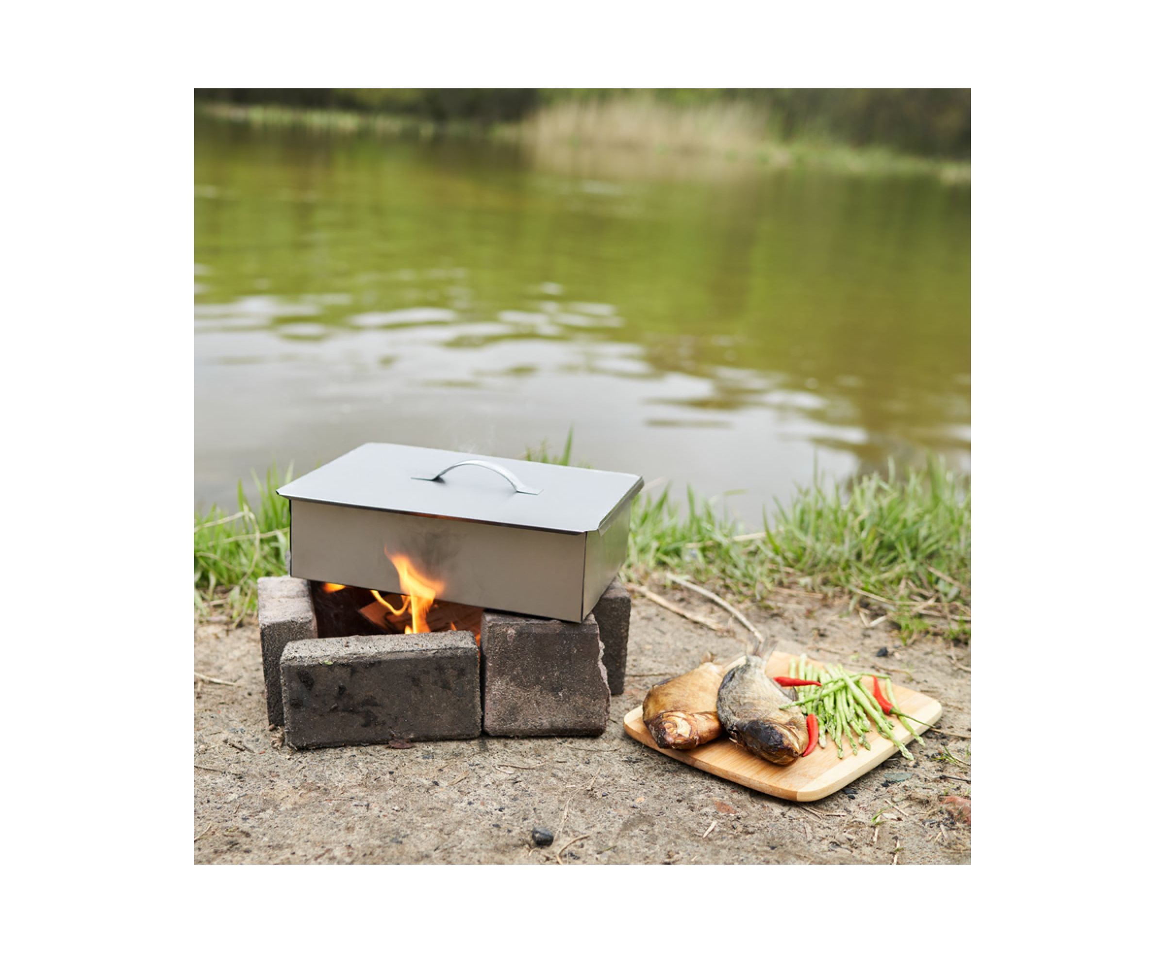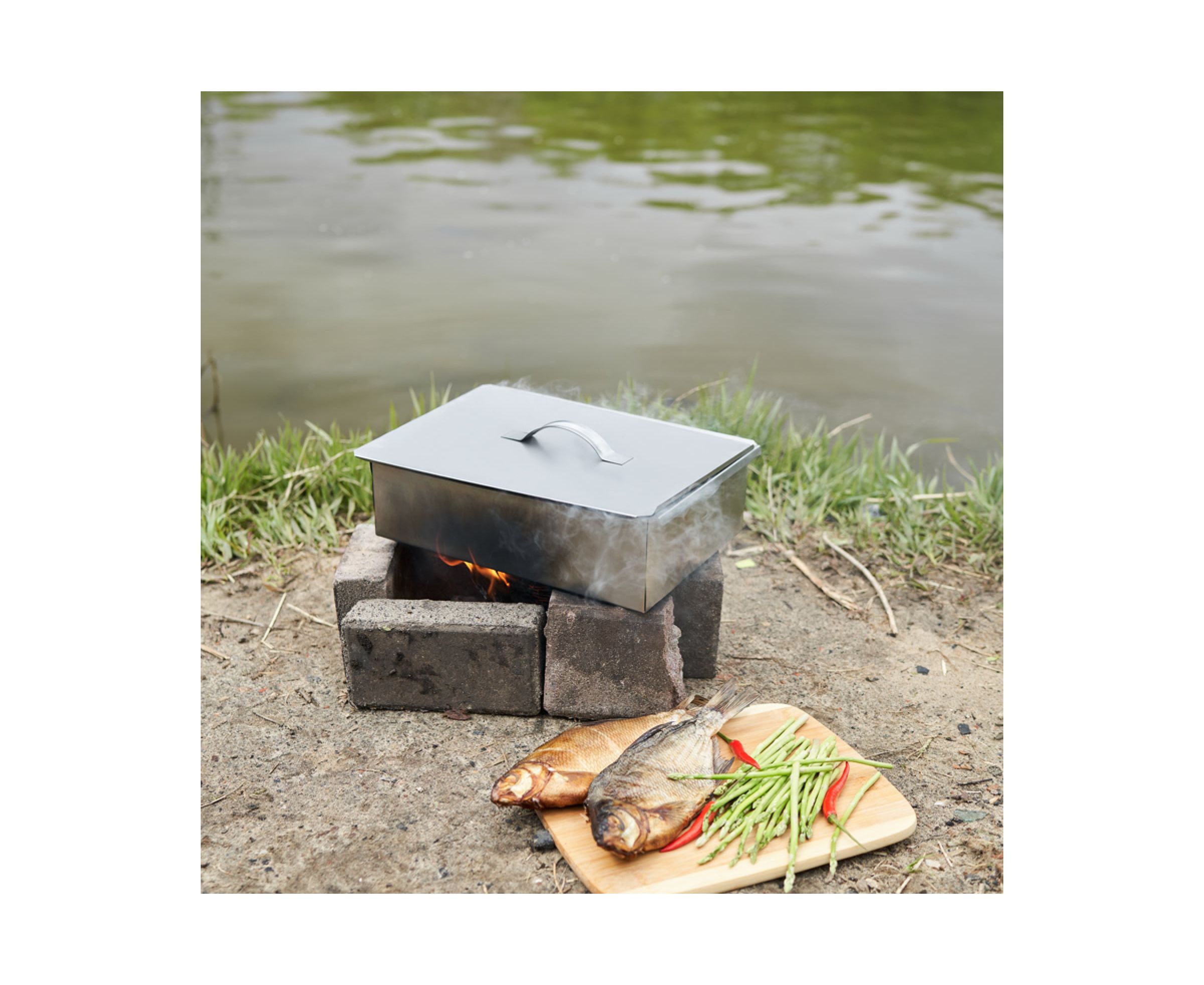 Одноуровневая коптильня СОКОЛ Гурман-1 в гофрокартонной коробке 62-0010 используется для приготовления блюд на свежем воздухе.