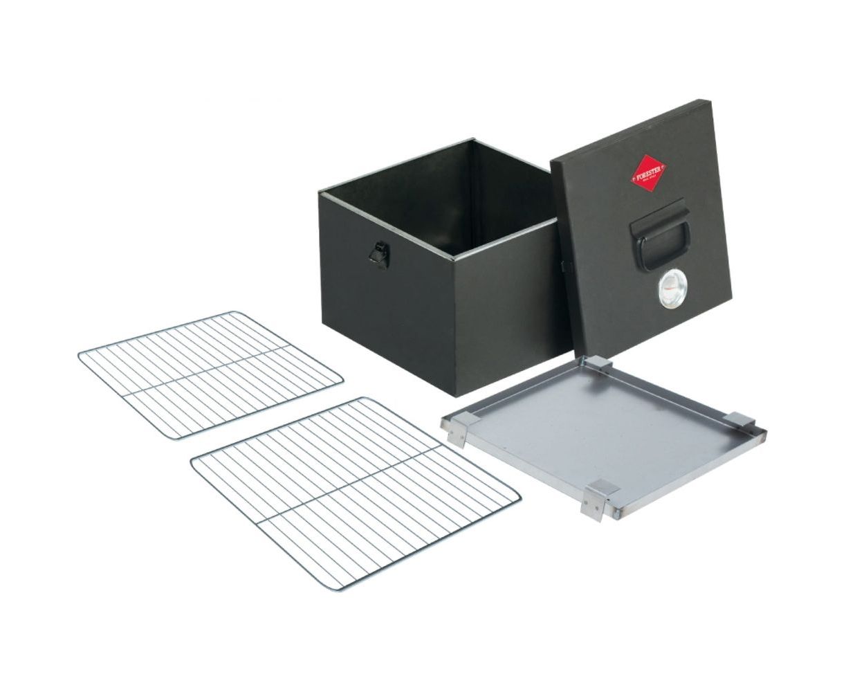 Стационарное коптильное устройство из нержавеющей стали Forester C823 предназначено для копчения рыбы и мяса на свежем воздухе. Состоит из коптильного корпуса, крышки и двух решеток для продуктов. Все детали выполнены из высококачественного материала. Есть жаропрочное покрытие, которое выдерживает температуру 650°С, тем самым продлевая срок службы изделия. На крышке расположен термометр - для определения температуры внутри коптильни. Теперь можно контролировать процесс копчения, не открывая крышку. Коптильня легко устанавливается, имеет ручку для переноски и замки-защелки на корпусе.