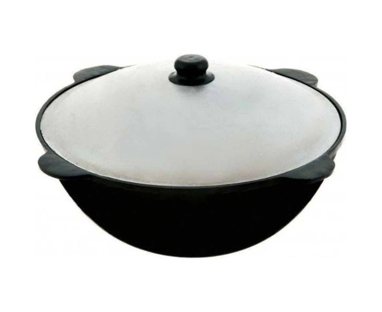 Чугунный казан Davr Metall Узбекский 16 л, плоское дно, с алюминиевой крышкой КазУз16ЛП