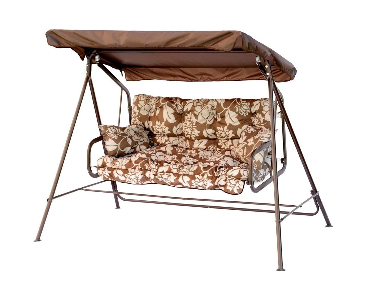 Cадовые качели OLSA Невада аналог Бари 2-х местные, каркас коричневый, коричневый, рисунок цветы с1332