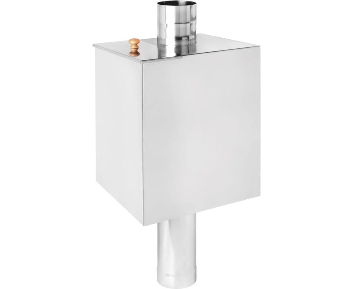 Бак на трубе 120 мм Везувий 80 л, AISI 439 ВЗ12582 - прямоугольная ёмкость из нержавеющей стали, обладающей высокими прочностными и пластическими свойства, что дает более высокую стабильность структуры этой стали при нагреве и сварке.