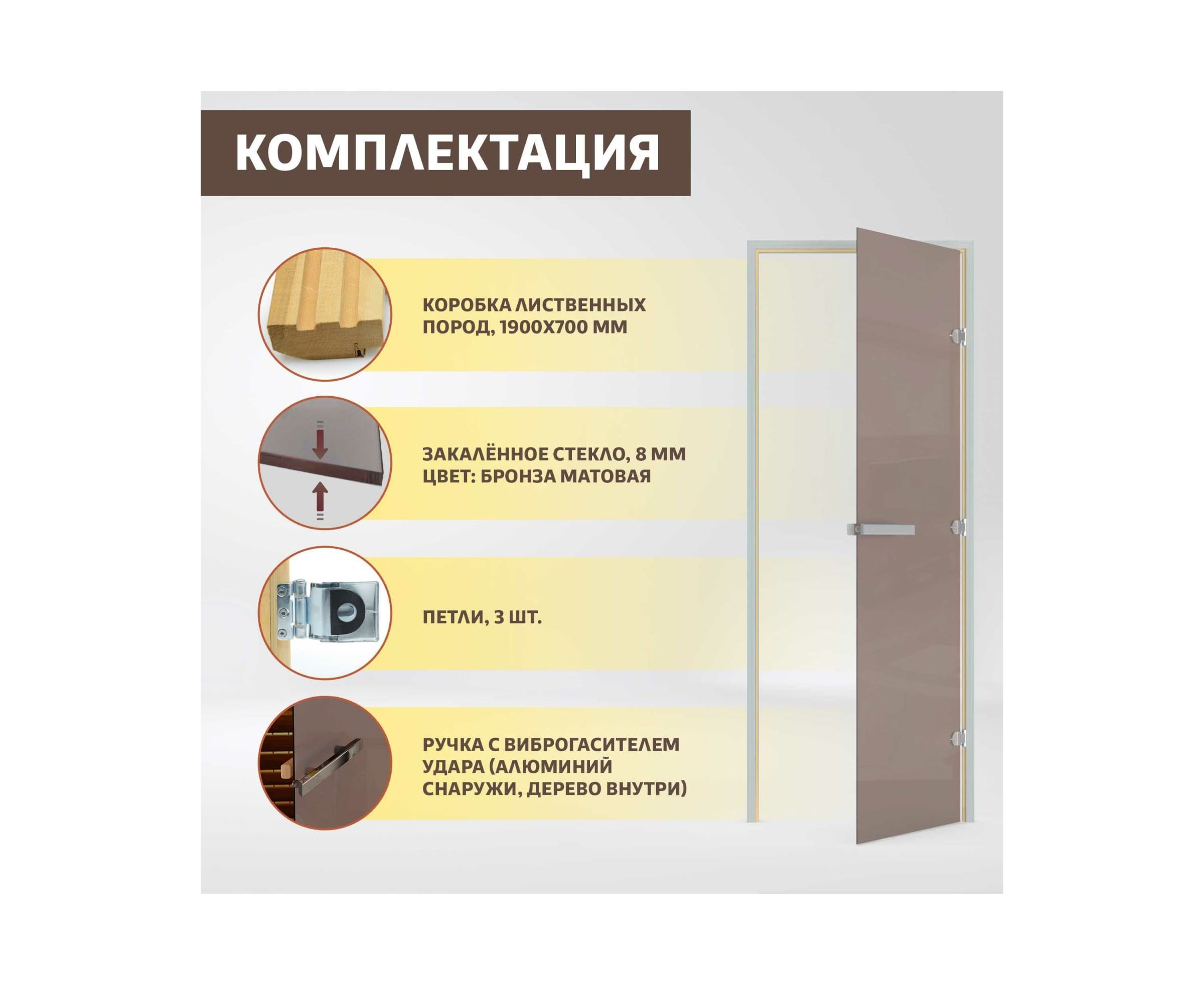 Дверь для бани DoorWood Бронза матовая, 1900х700 мм УТ-00011425 имеет приятный внешний вид, идеально подходит к любому интерьеру.