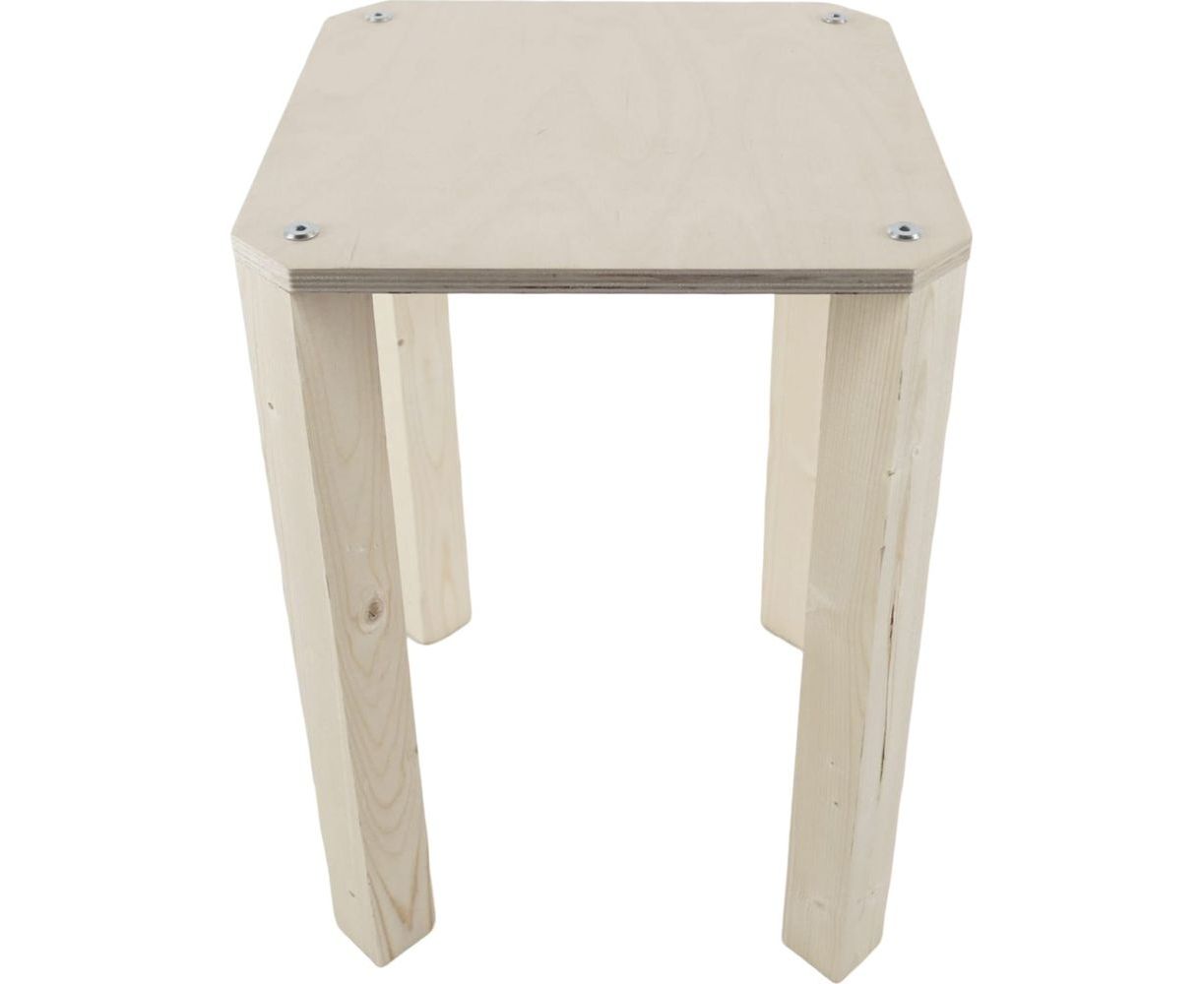 Подсобный деревянный табурет ццц.Стулья.Сайт без отделки 5700 предназначен для подсобных помещений. Сиденье восьмиугольное из березовой фанеры, ножки квадратного сечения, из массива сосны. Поверхность дерева шлифованная, не покрытая лаком. Предполагается отделка морилкой и лаком (либо другими средствами), либо использование в неотделанном виде. Простая и прочная конструкция, выдерживает человека до 120 кг. В упакованном виде коробка с табуретом имеет компактный размер.
