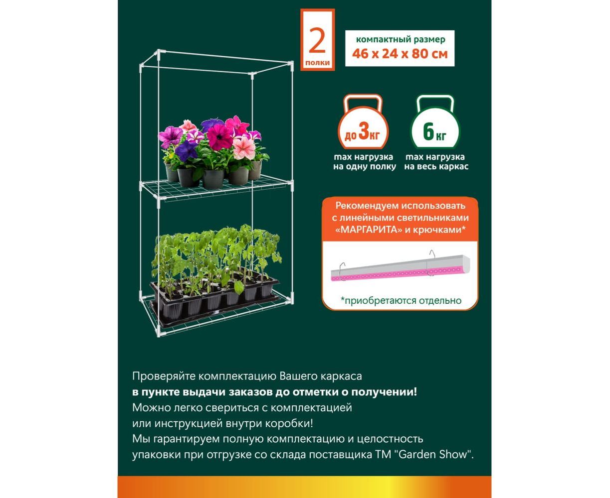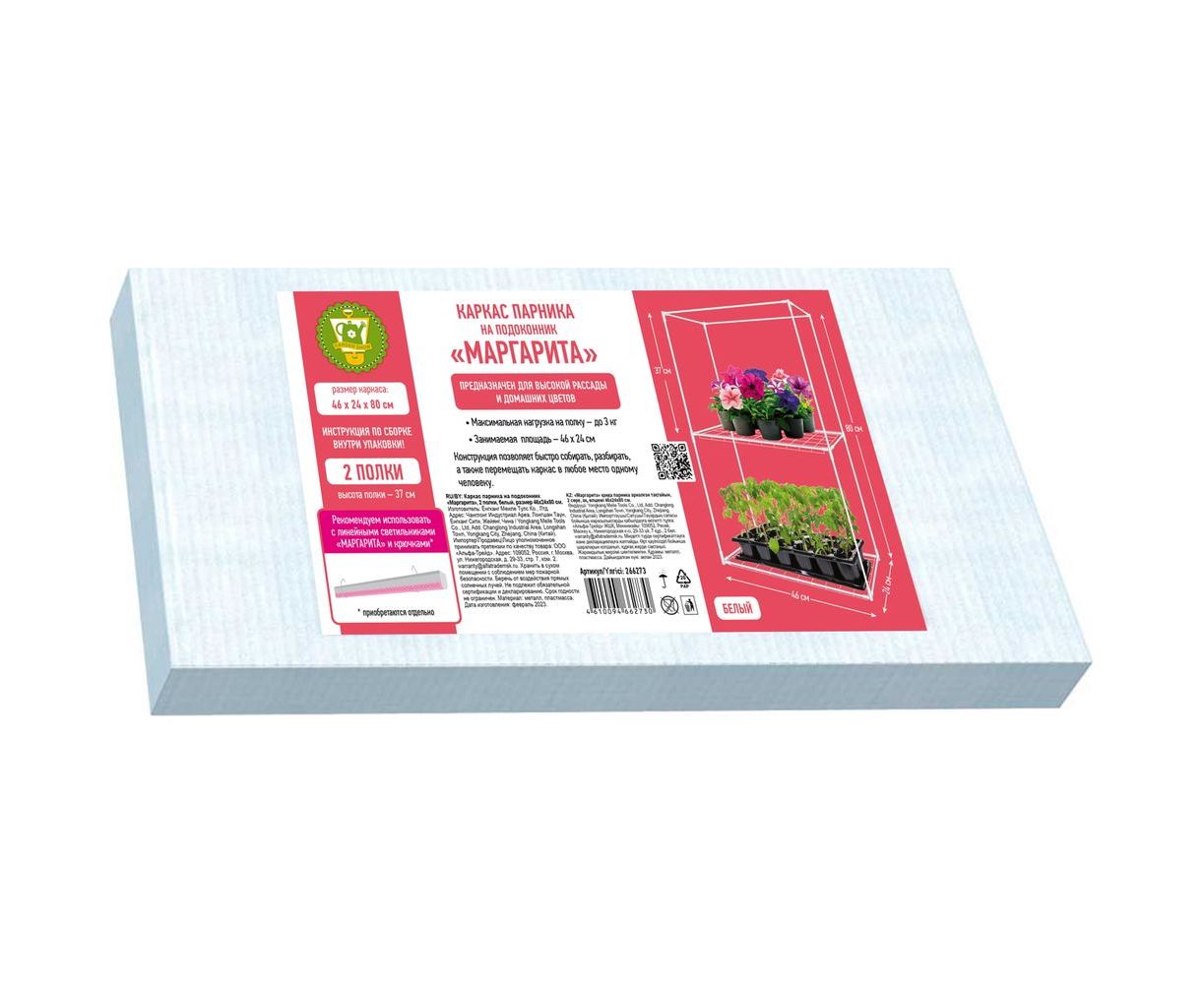 Каркас парника GARDEN SHOW Маргарита белый 2 полки на подоконник, 46x24x80 см ПТ000003170 предназначен для установки парника.