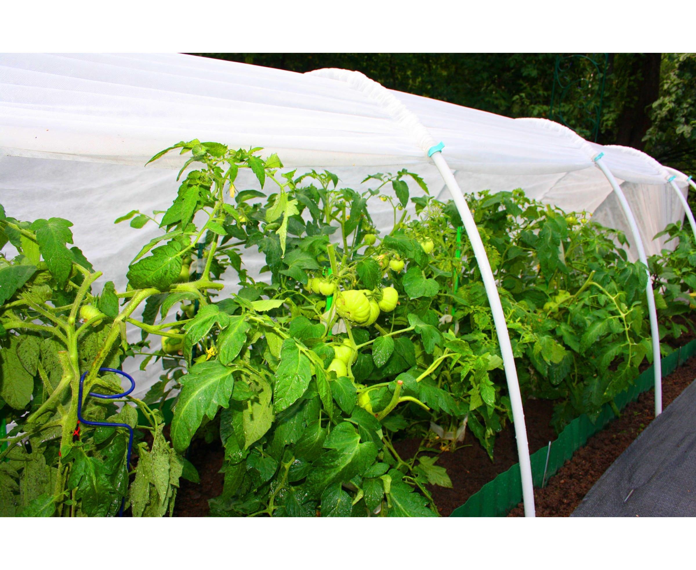 Пластиковые парниковые дуги уже вшиты в материал (жесткие и прочные трубы ПВД, устойчивые к коррозии, диаметром 20 мм, легко гнутся и не ломаются).