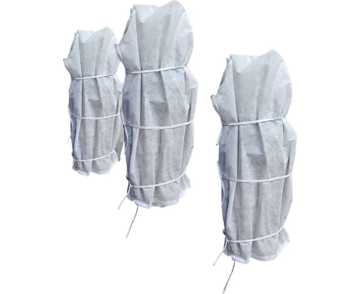 Укрывные чехлы имеют овальную форму с вязками по всей их длине. Форма чехла равномерно укрывает растение, не заламывая и не заминая веточки. Вязки по всей длине чехлов позволяют не растрепаться им при сильном ветре и помогают удобно прижать укрытие, тем самым сохранив тепло внутри. Многоразовое использование. Размеры: большой - 160 х 110 см; средний - 110 х 80 см; маленький - 80 х 60 см.
