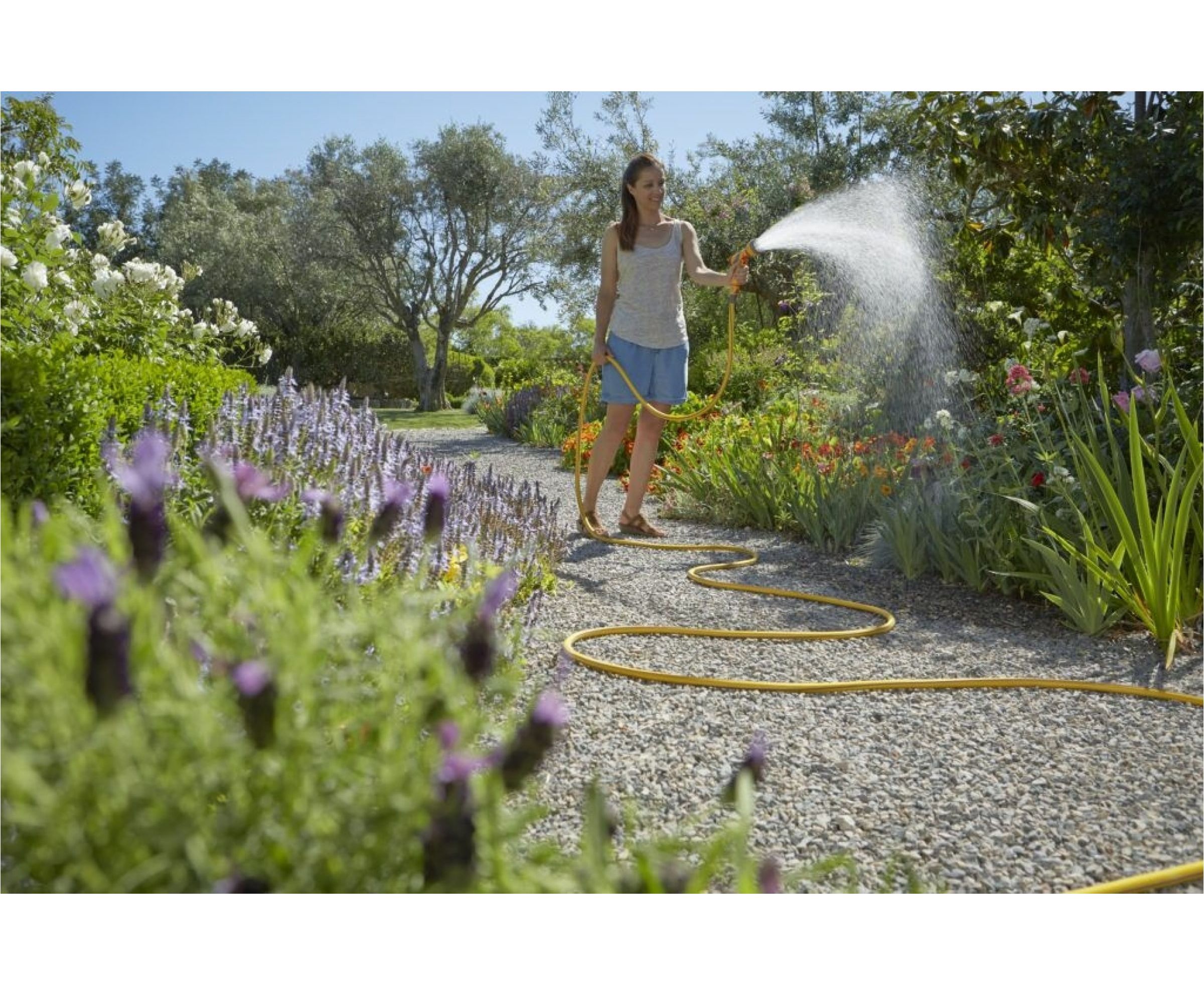 Вспененный ПВХ слой по технологии Soft & Flex действует как амортизатор - придает шлангу превосходную устойчивость к перекручиванию, придавая легкость и гибкость, позволяет шлангу легко маневрировать по саду с минимальными усилиями, а так же обеспечивает легкость намотки. Вес шланга на 25% меньше, чем у конкурентов.