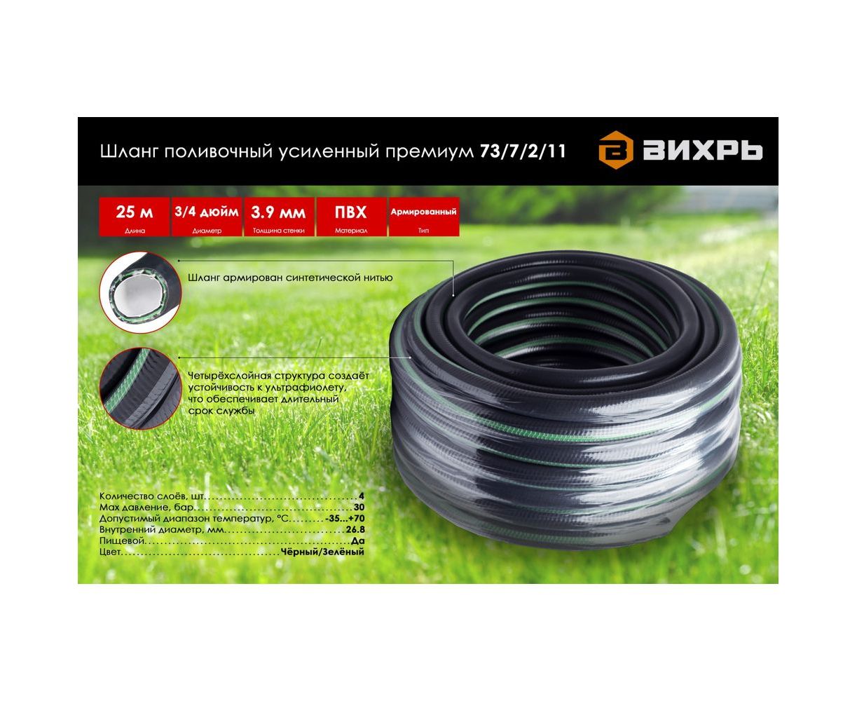 Армированный усиленный поливочный шланг Вихрь премиум, ПВХ, пищевой, четырехслойный, 3/4"", 25 м 73/7/2/11
